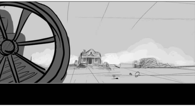 Storyboard exercise from Blue Sky Studios 2019 internship. Interpretation of an excerpt from "The Grapes of Wrath" script by Nunnally Johnson. Scene: Tommy comes home after four years in jail, only to find that his family must leave for California before the bank comes to take their land.