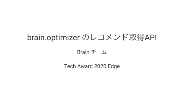 brain.optimizer ͷϨίϝϯυऔಘAPI Brain νʔϜ Tech Award 2020 Edge