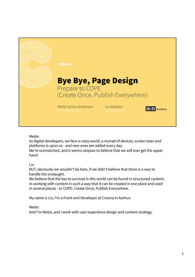 I uploaded a version without the transcript at https://speakerdeck.com/livmadsen/bye-bye-page-design-clean