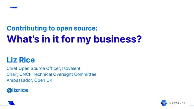 Contributing to open source has never been more popular. There are plenty of clear benefits for individuals, from learning new skills, through the satisfaction of knowing your code is being used by others, to building respect and reputation in the community. But what’s in it for a business? Why should your company invest engineering time & resources in other people’s projects? Liz Rice, Chief Open Source Officer at Isovalent, and Chair of the CNCF’s Technical Oversight Committee explores some of the reasons why some of the world’s most successful enterprises are getting involved with open source communities and investing in open source engineering.