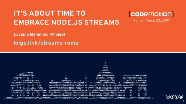 With very practical examples we'll learn how streams work in Node.js & the Browser. With streams, you will be able to write elegant JavaScript applications that are much more composable and memory efficient! Streams are probably one of the most beautiful features of Node.js, but still largely underestimated and rarely used. Once you'll grasp the fundamentals, you'll be able to solve some ordinary programming challenges in a much more elegant and efficient way. With streams power in your tool belt, you'll be able to write applications that can deal with gigabytes or even terabytes of data efficiently. This talk will cover the following topics: Streams: when and how; Different types of streams; Built-in and custom streams; Composability; Utils & Streams in the browser.