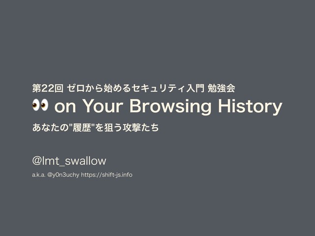 「第22回 ゼロから始めるセキュリティ入門 勉強会」で使った LT 資料です。 フルバージョンはこちら: https://diary.shift-js.info/browsing-history-sniffing/