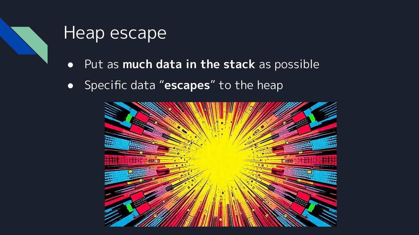 85. Heap escape analysis • Compiler analyzes variables ◦ It can
