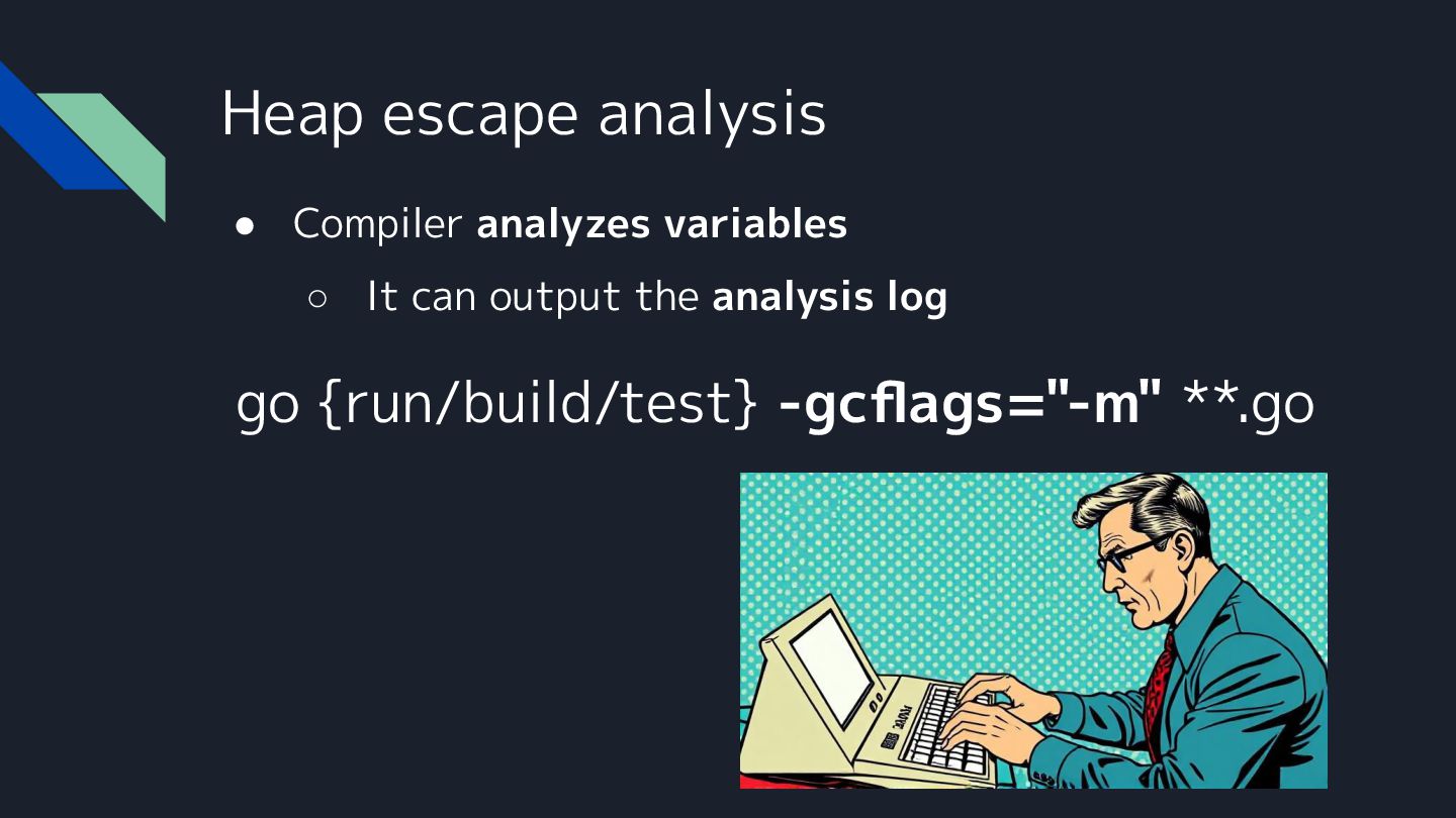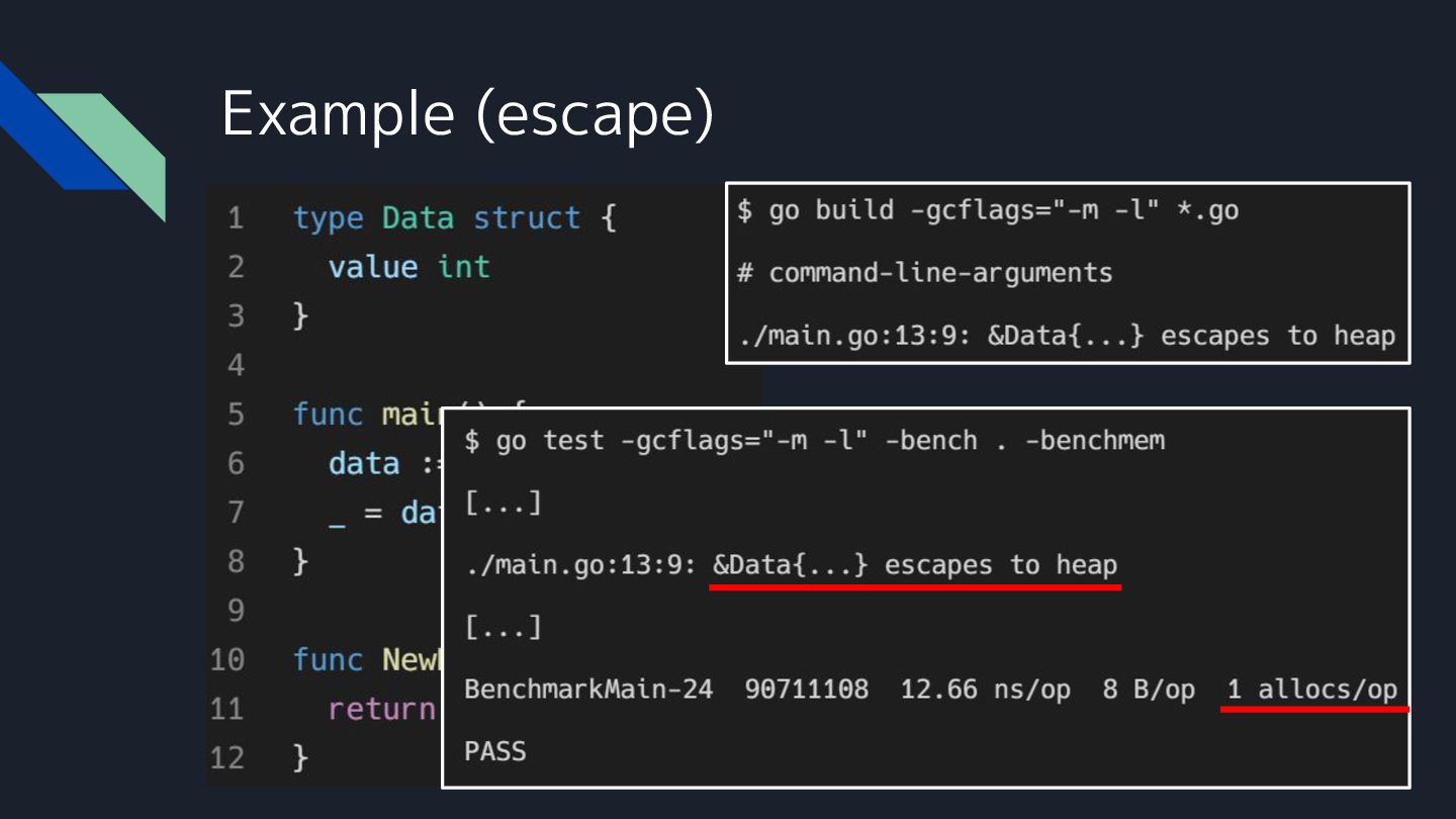 output the analysis log go {run/build/test} -gcflags="-m" **.go