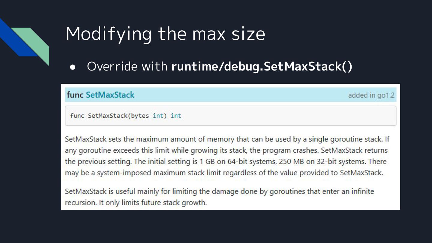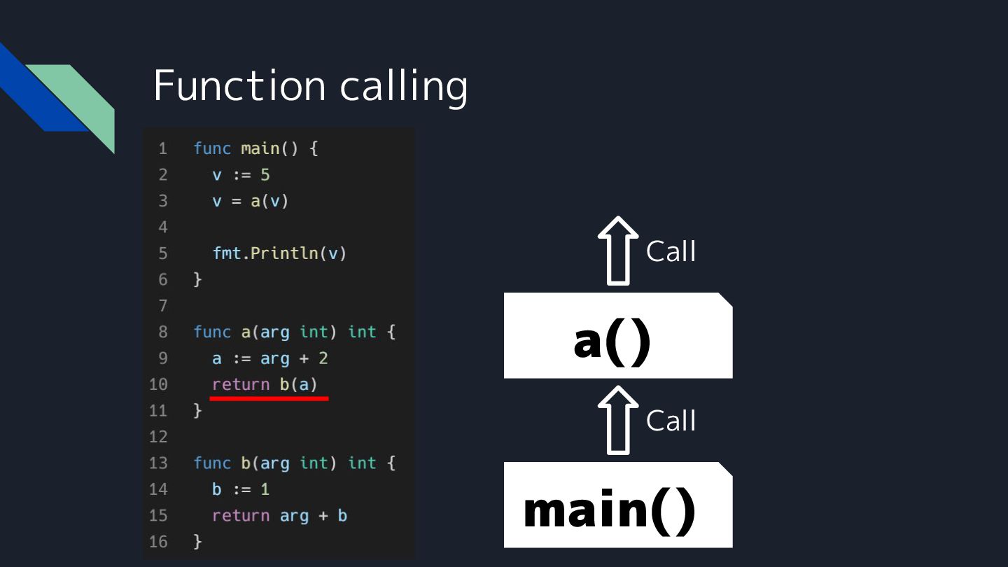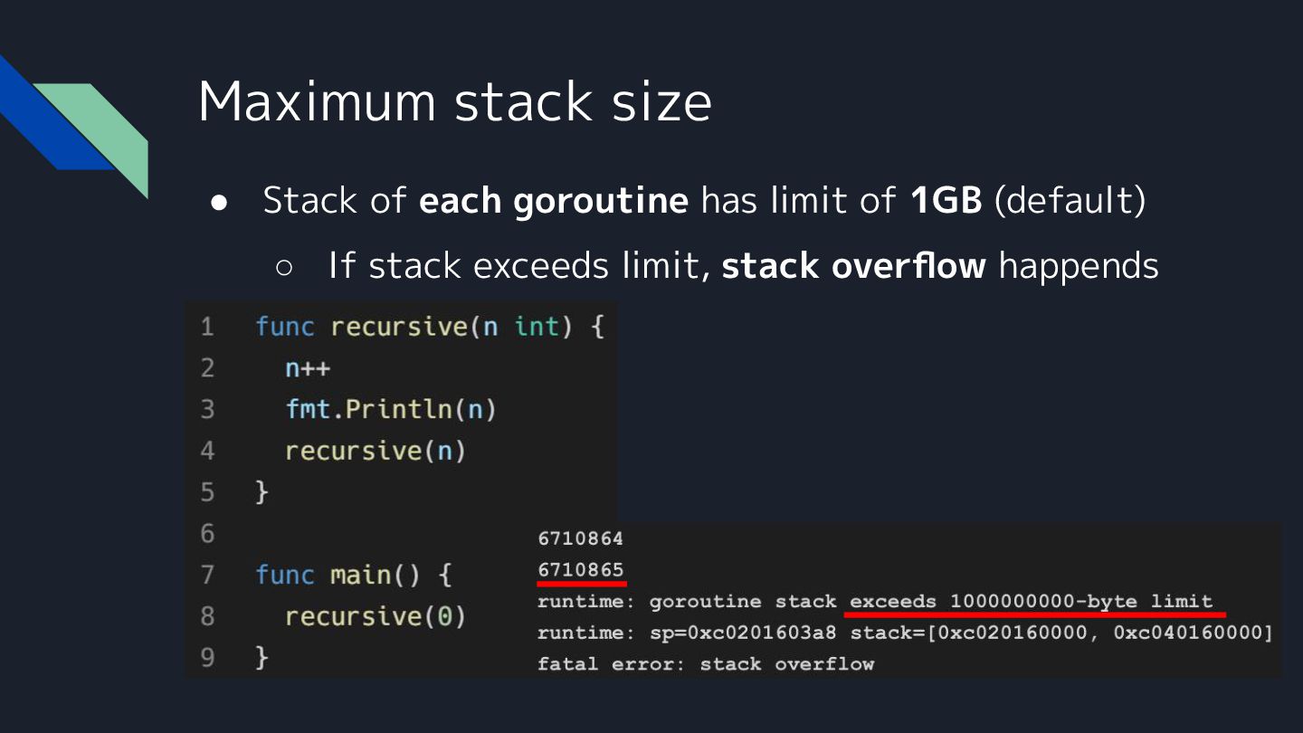 data size (maps/slices) ◦ Stack allocation is compiler’s duty • Sometimes can’t share variables between functions