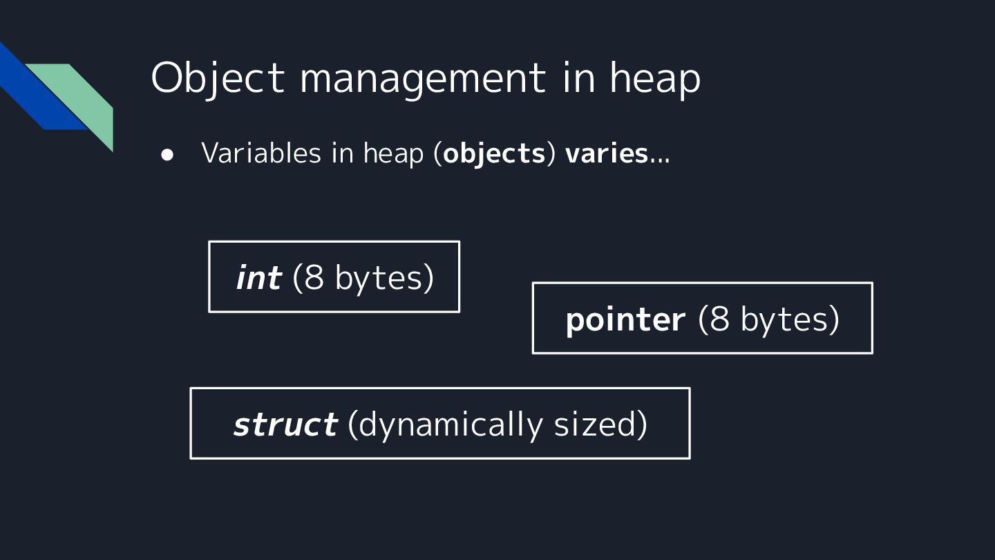 int (8 bytes) struct (dynamically sized) pointer (8 bytes)