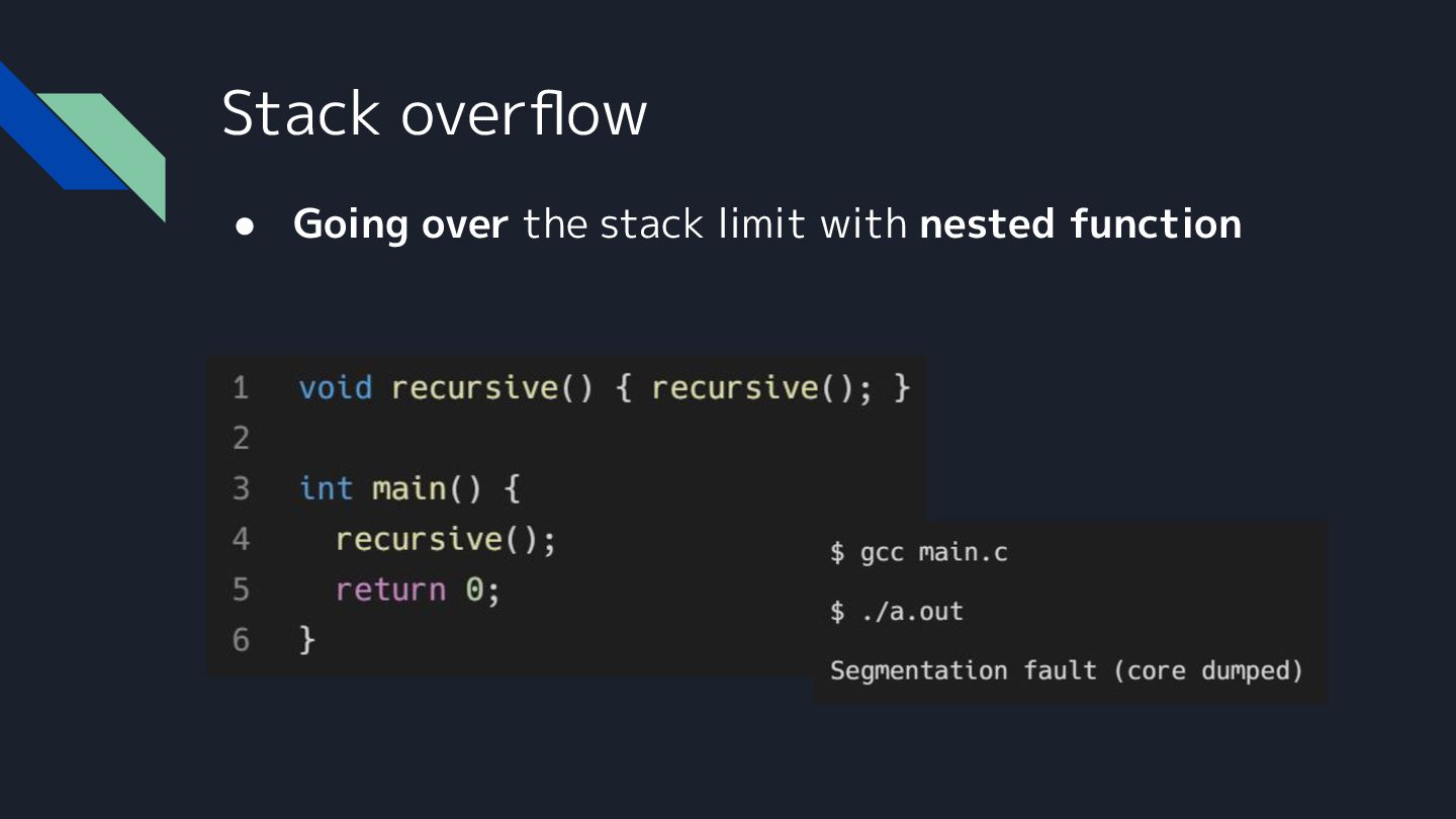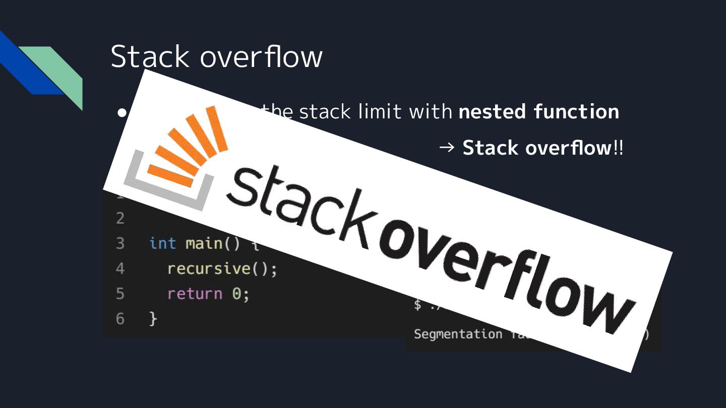 of 1GB (default) ◦ If stack exceeds limit, stack overflow happends