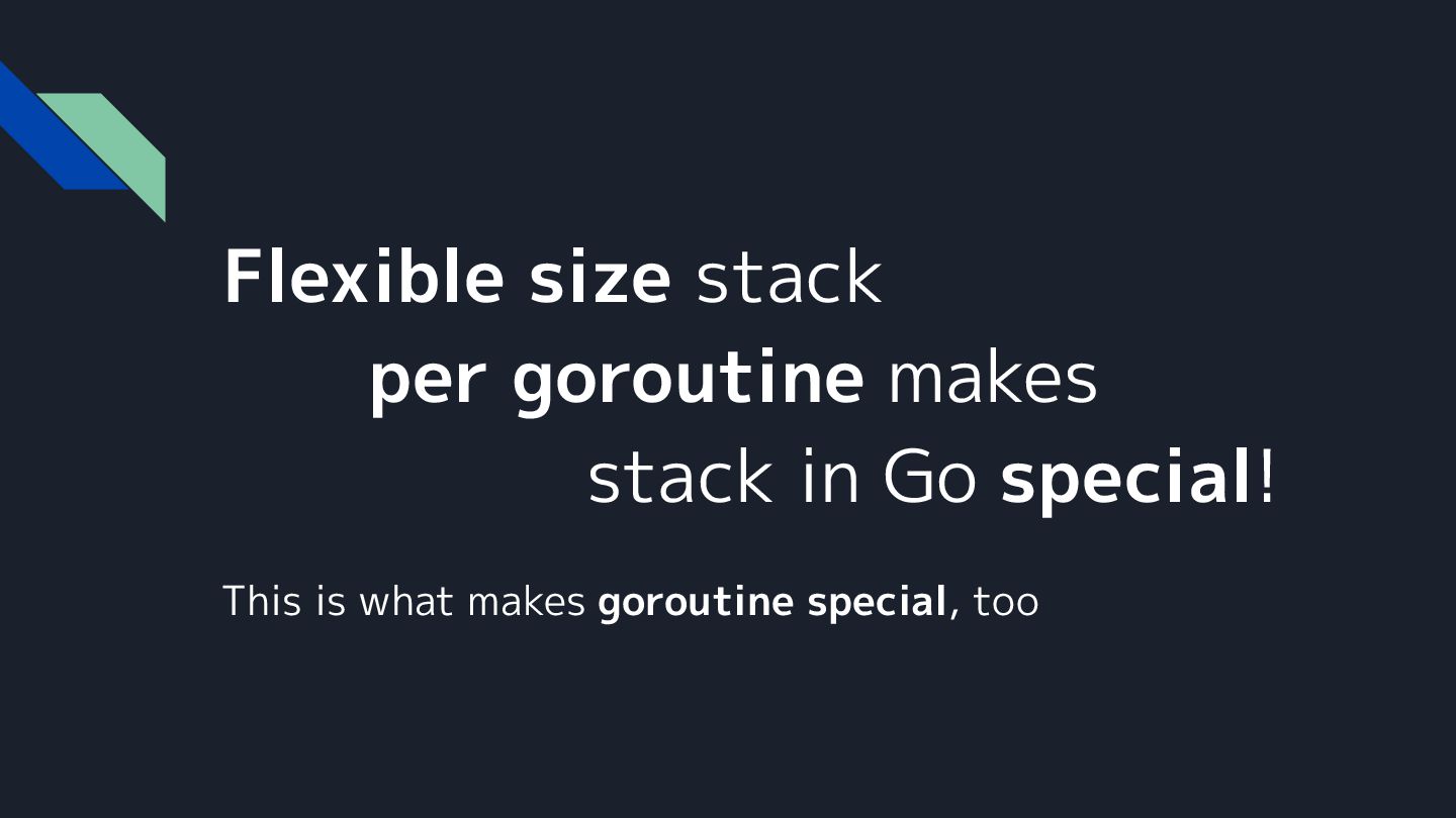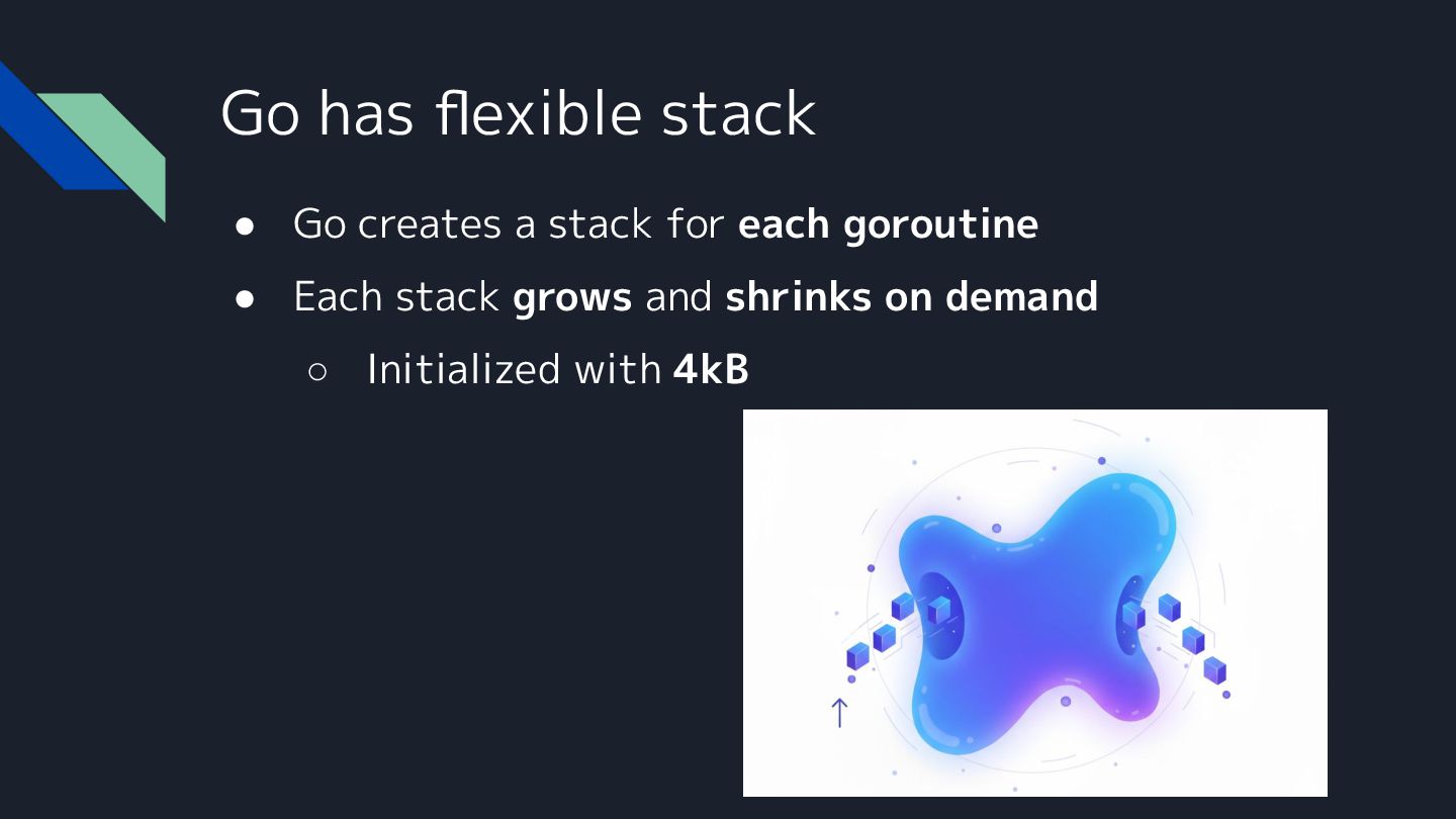 each goroutine • Each stack grows and shrinks on demand ◦ Initialized with 4kB