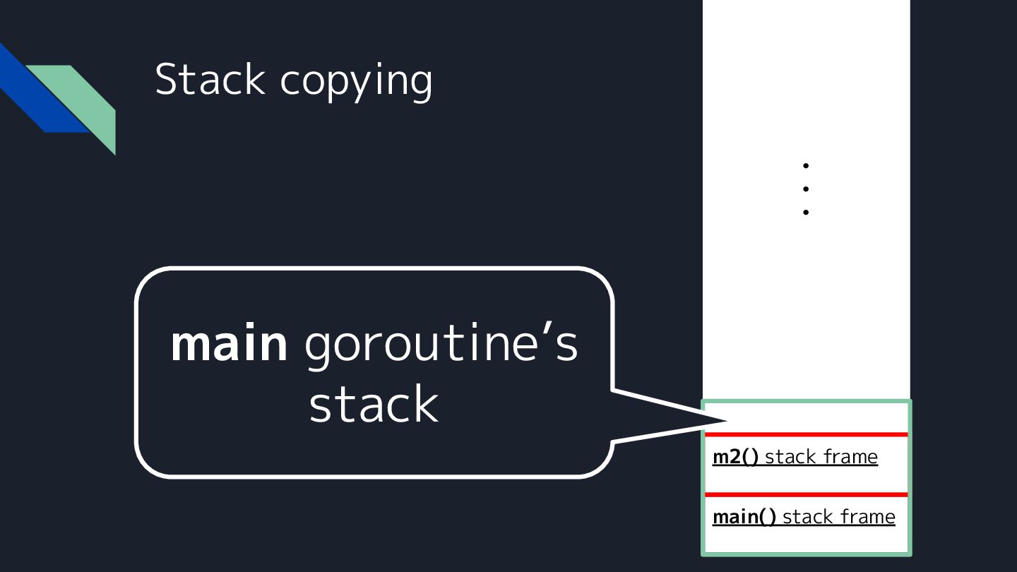 a2() stack frame a3() stack frame a4() stack frame m2() stack frame b() stack frame a goroutine b goroutine