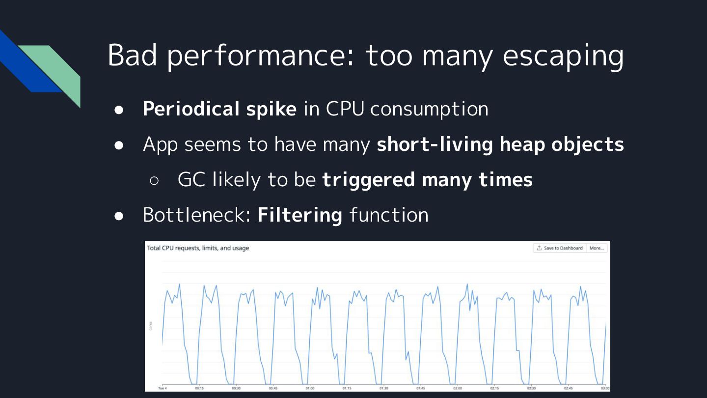102. Bad performance: too many escaping • Periodical spike in CPU