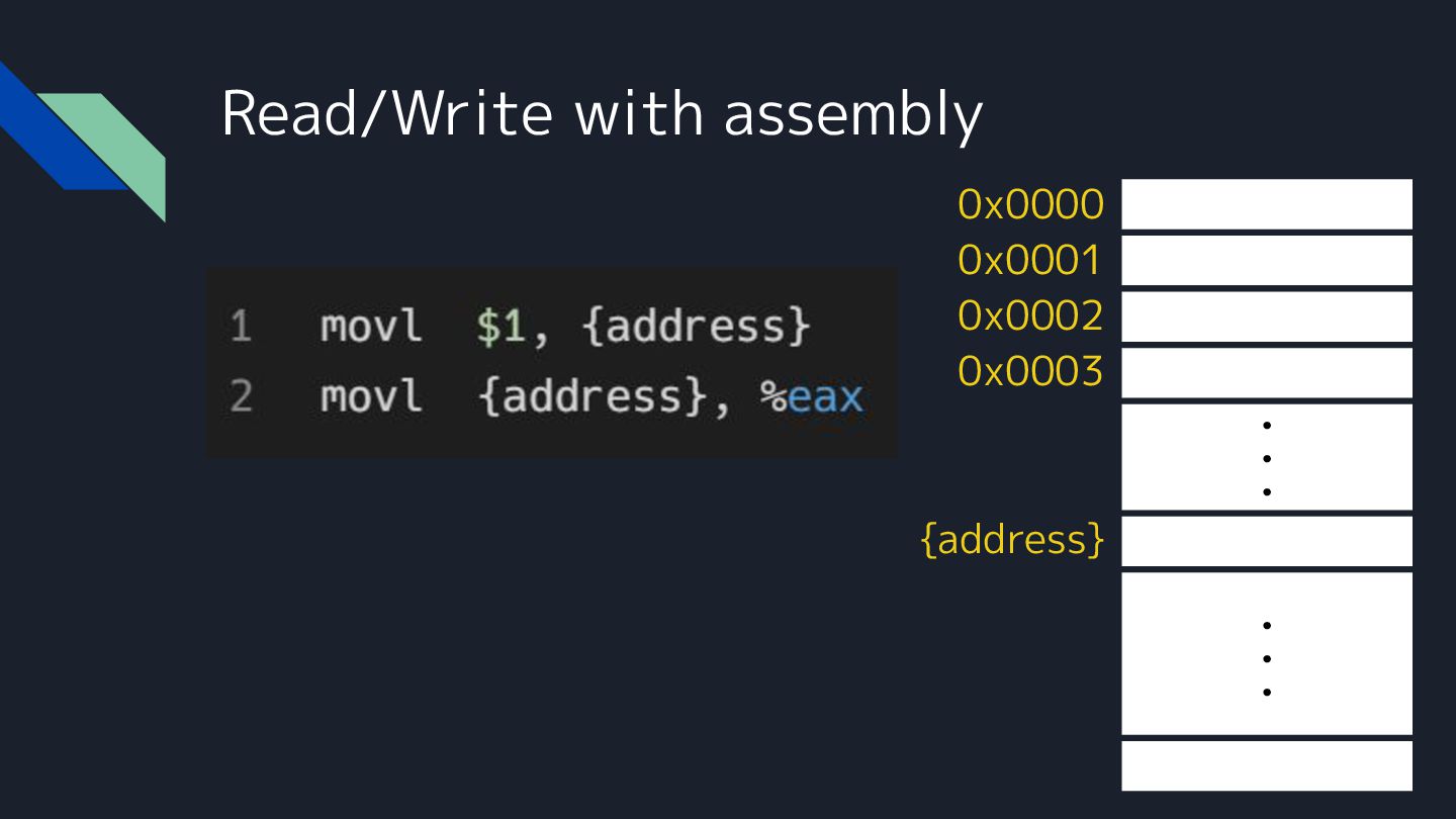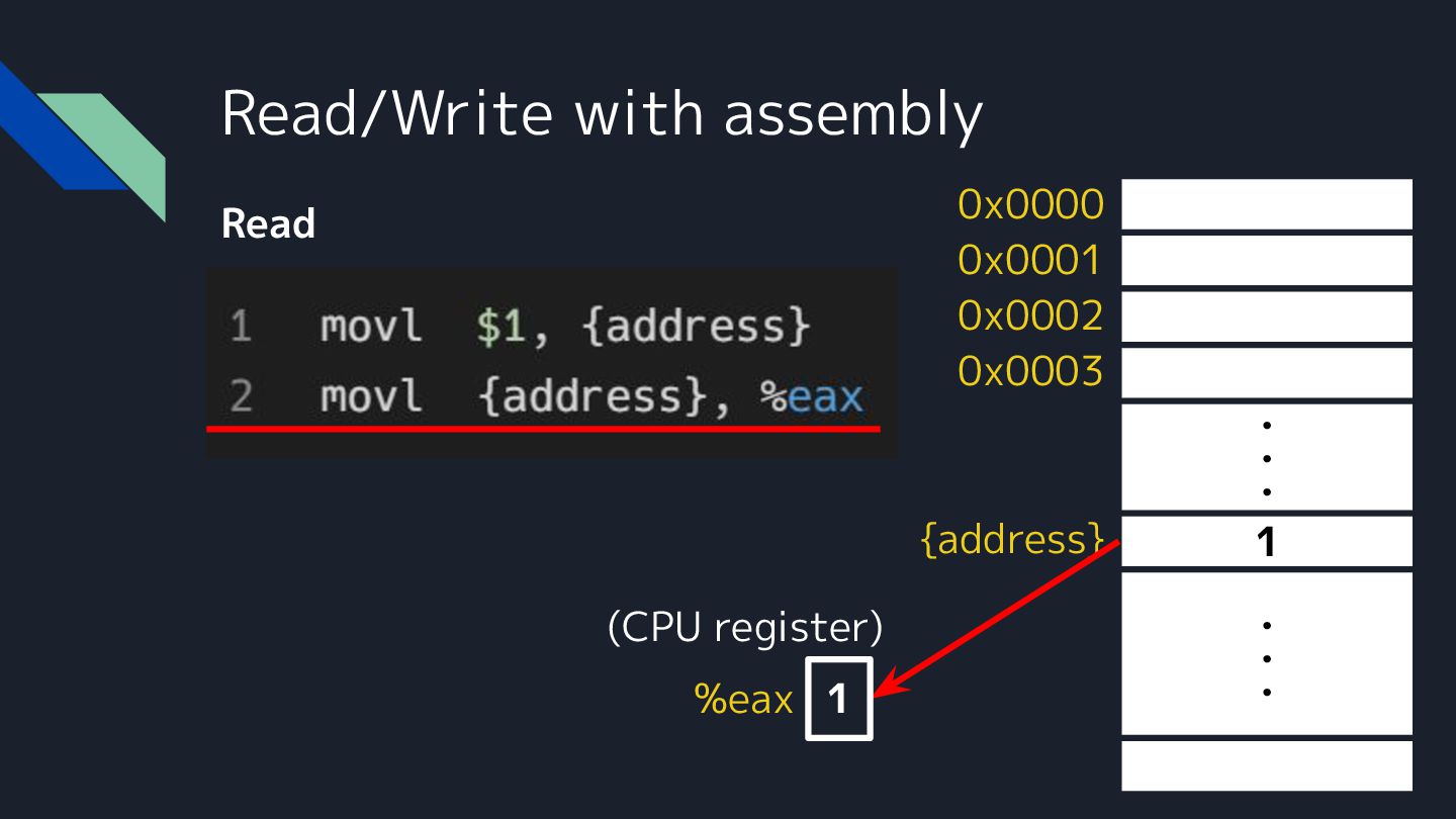 0x0000 0x0001 0x0002 0x0003 {address} 1 1 %eax (CPU register)