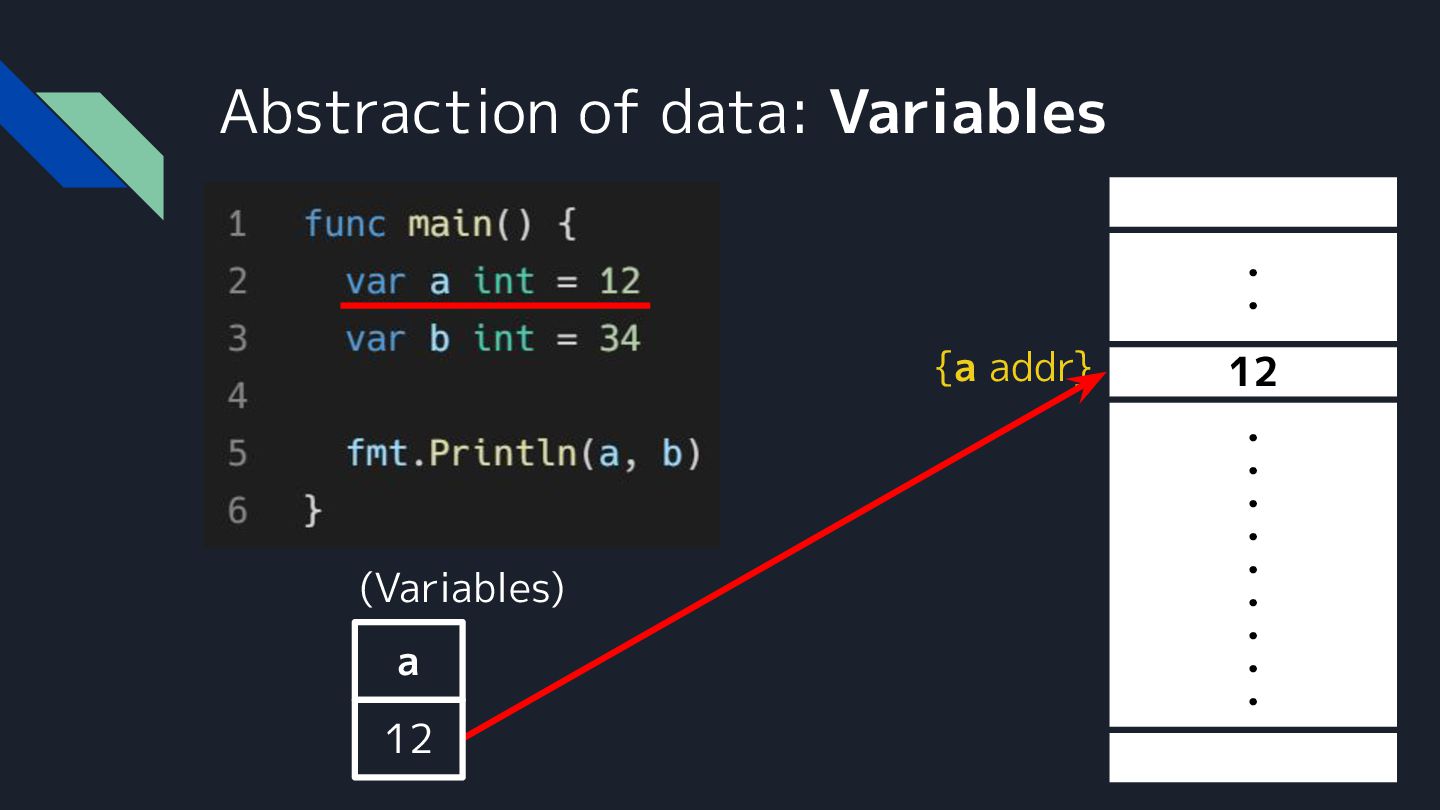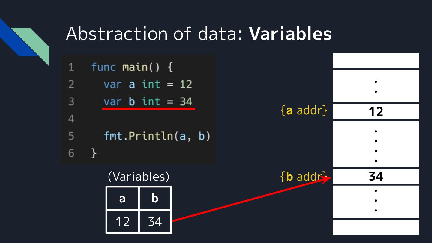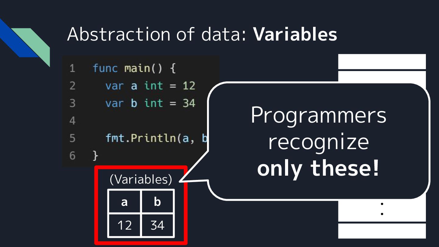 20. Abstraction of data: Variables a (Variables) 12 b 34 {a