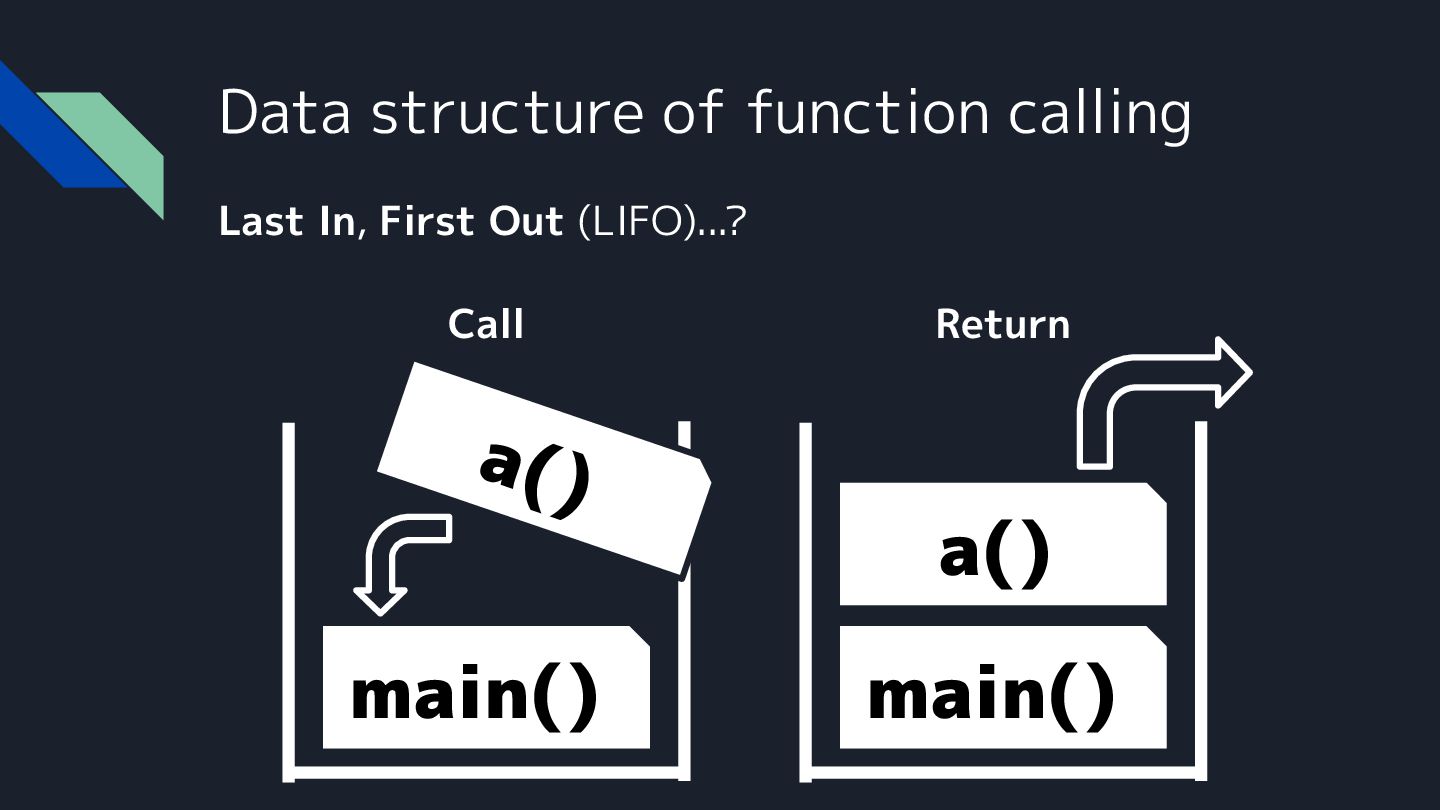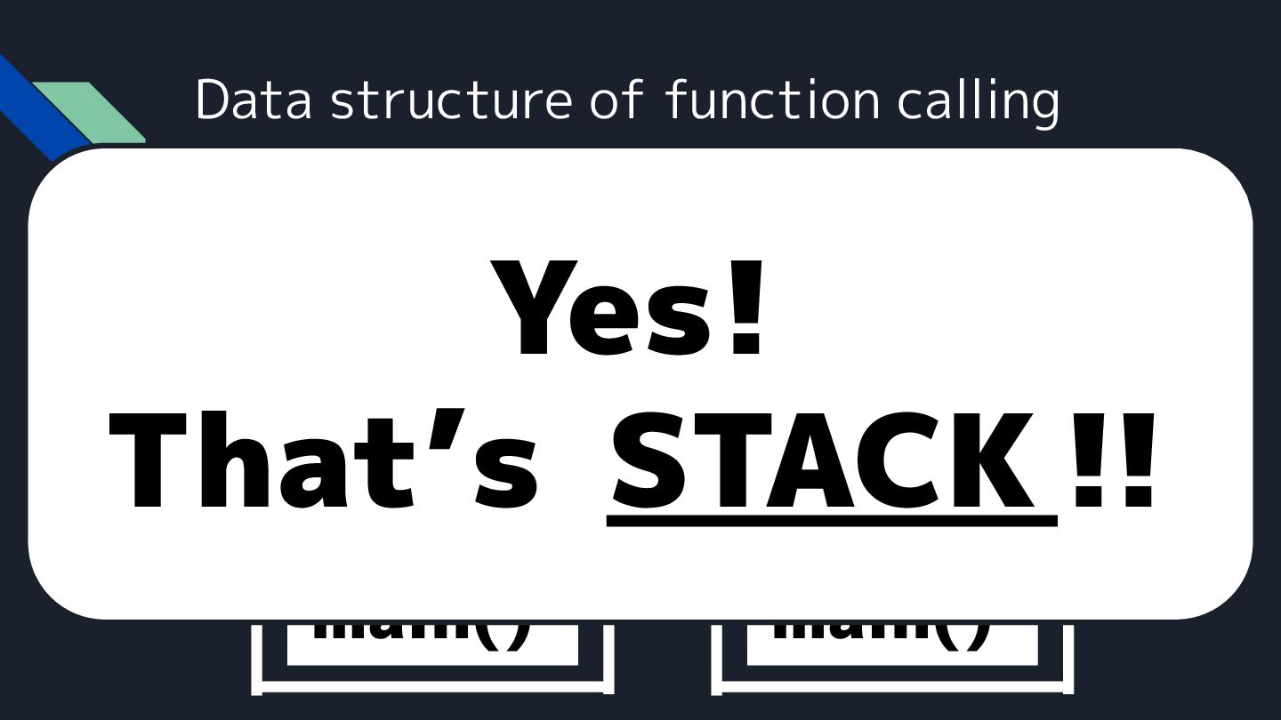 main() a() Call main() a() Return Yes! That’s STACK !!