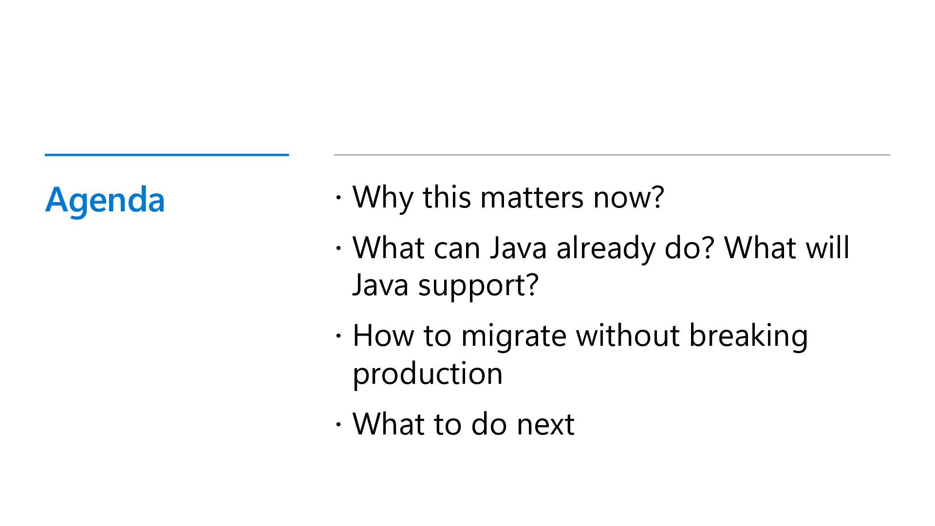 already do? What will Java support? ž How to migrate without breaking production ž What to do next