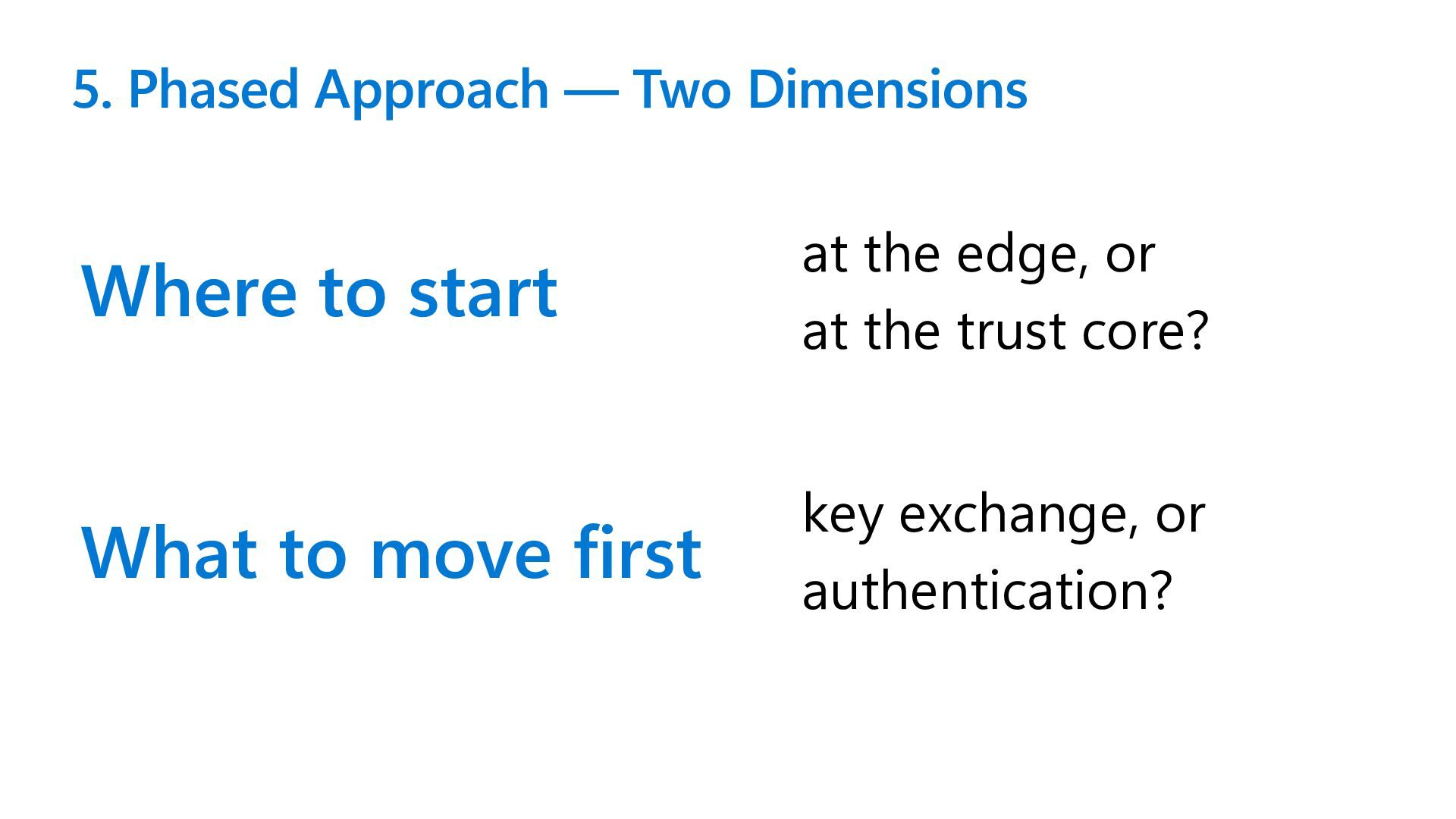 at the trust core? key exchange, or authentication? Where to start What to move first