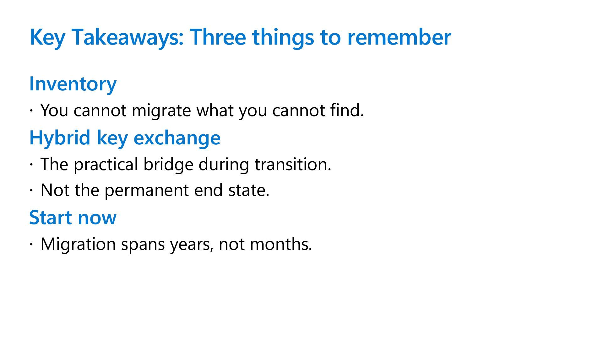 migrate what you cannot find. Hybrid key exchange ž The practical bridge during transition. ž Not the permanent end state. Start now ž Migration spans years, not months.