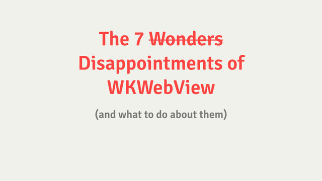 ton of great documentation! • What was formerly a single class (UIWebView) and protocol (UIWebViewDelegate) is now 14 classes and 3 protocols (WKNavigationDelegate, WKScriptMessageHandler, WKUIDelegate) • Other than class docs (and StackOverflow) , no official “How-To WKWebView” from Apple