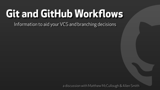 Squash It Linear Fast iterations Git Project Workflow Flow Types Aims Long-lived release branches Maintenance Commands rebase master merge --squash rebase -i commit —amend pull -r bisect Easy regression discovery Developer on boarding Continuous Integration Build all branches Version Control UI Handles rebased branches? Triggers UI updates on merges? Pull Requests Commit keywords: “fixes #22” revert Setting up jobs Push branch to production Chatops Deploying to branches Reverse merges merge master topic Deployments API GitHub Releases API Semantic versioning best practices Teams Solo 1-5 5-15 15-50 50-150 150+ reset --hard reset --soft rebase --autosquash -i GitHub Deployments API Centralized Decentralized ➊