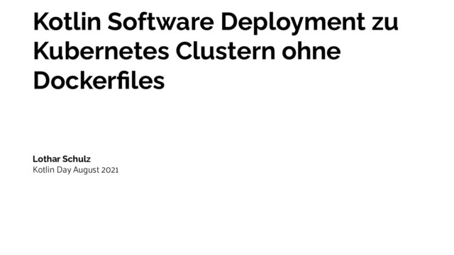 Ihre Java-Anwendungen ohne einen Docker-Daemon - und ohne das für Ingenieurinnen tiefgreifende Beherrschung der Docker-Best-Practices nötig sind Plugins: - Gradle - Maven - Ktor ist ein Framework, mit dem sich asynchrone Server und Clients in verbundenen Systemen mit minimalem Aufwand aufbauen lassen. Kotlin Software Deployment zu Kubernetes Clustern ohne Dockerfiles Kotlin Day August 2021