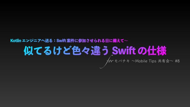 Kotlin エンジニアへ送る:Swift 案件に参加させられる日に備えて~似てるけど色々違う Swift の仕様 / from Kotlin to Swift