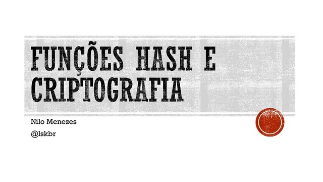 2 8 1 0 0 • Dificilmente ou não inversível • Não serve para criptografia, pois perde dados • Usada para assinaturas, confirmação, detecção de erros, criação de identifadores • Exemplos: MD5, SHA-512