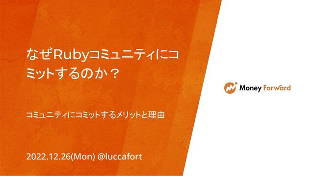 なぜRubyコミュニティにコ ミットするのか? コミュニティにコミットするメリットと理由 2022.12.26(Mon) @luccafort