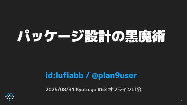 パッケージ設計の黒魔術 id:lufiabb / @plan9user 2025/08/31 Kyoto.go #63 オフラインLT会 1