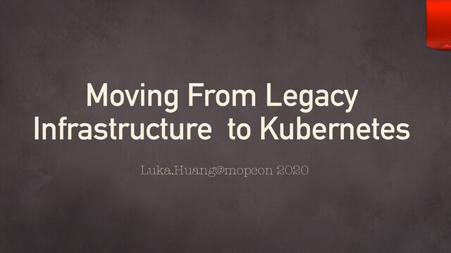 MOPCON 2020 - Moving From Legacy Infrastructure to Kubernetes