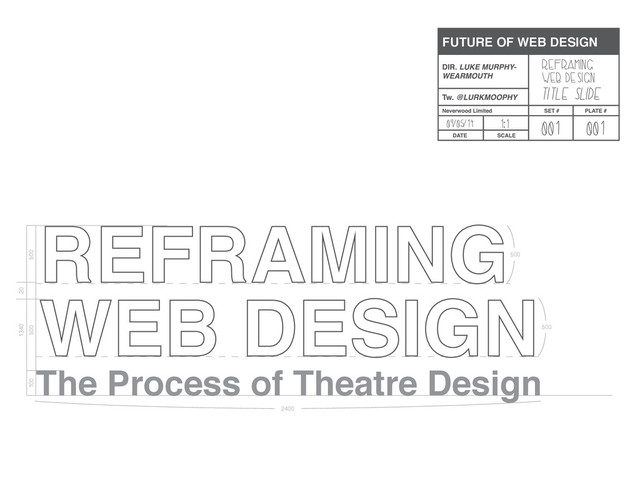 A talk based on how we might be able to make our process in web design better through picking apart theatre design. Delivered on 9th April, 2014 at Future of Web Design London