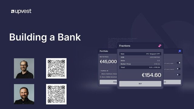 At Upvest, we build the software to manage the investments for millions of people from scratch. And with that, the organization to achieve this. We’d like to tell our story and share our learnings so far.