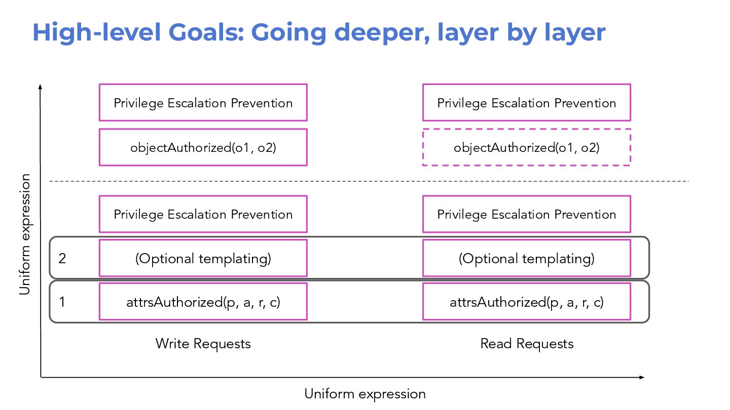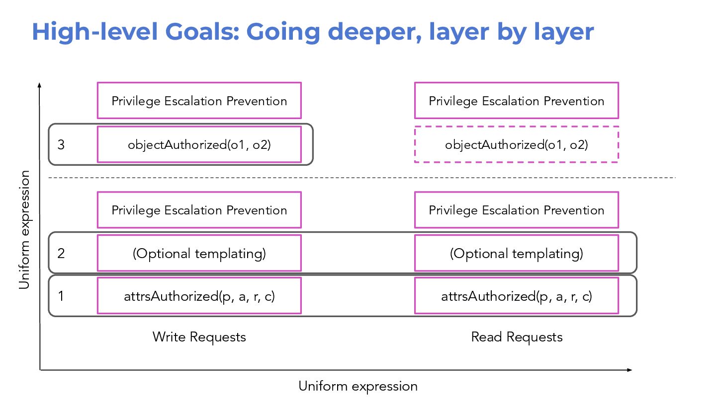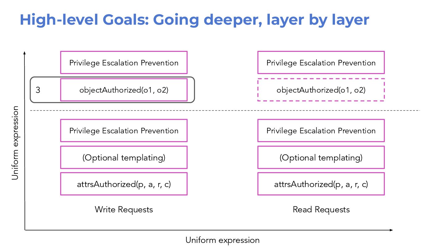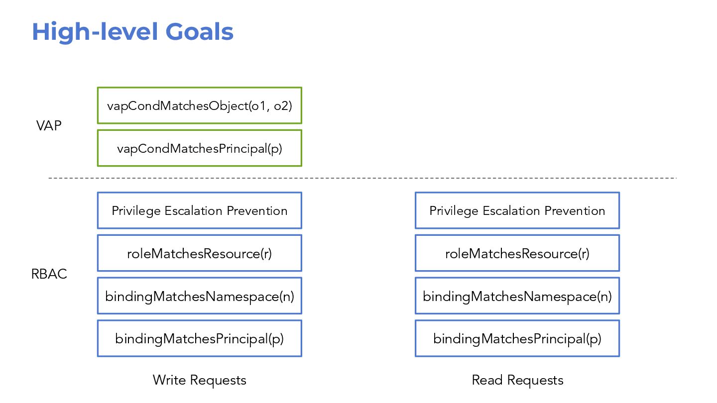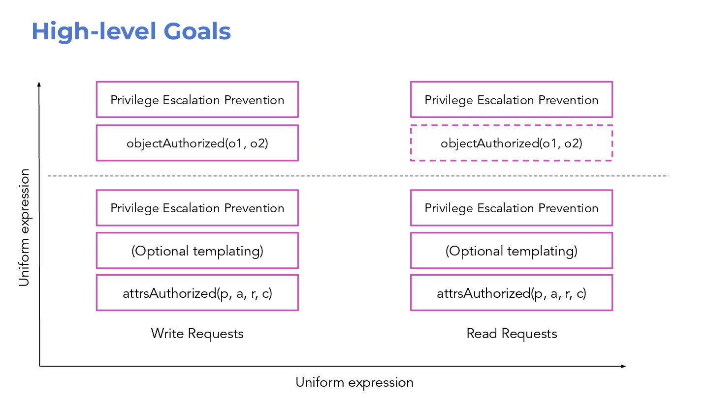 expressed interest in aligning field and label selectors across read and write verbs. One could add selectors to write verbs, but that expressivity is just a (very) small subset of what conditions users might write. However, we should totally unify the experience across reads and writes. To achieve that goal, I went the opposite way, exposing per-object predicates (as used in writes) for reads as well, instead of “raw” selectors. Selector predicate: request.resourceAttributes.fieldSelector.requirements.exists(r, r.key == "type" && r.operator == "=" && sets.equivalent(r.values, ["mytype"])) Object predicate: object.type == "mytype"