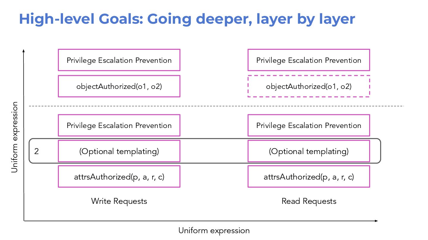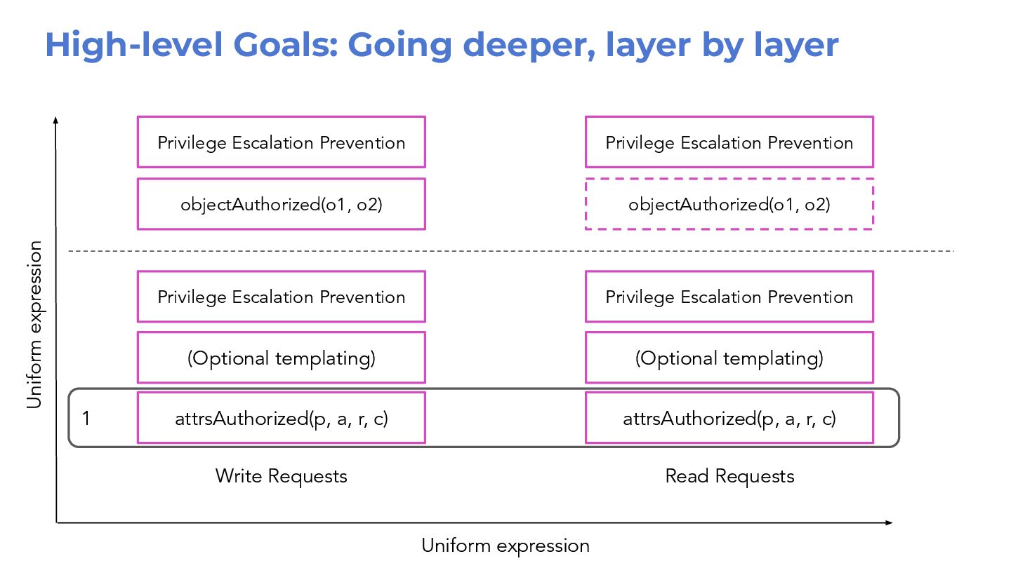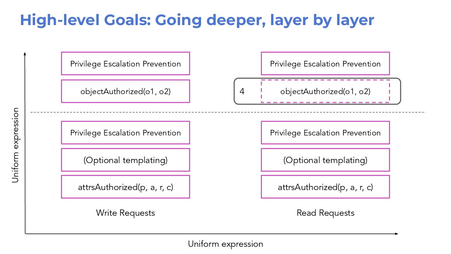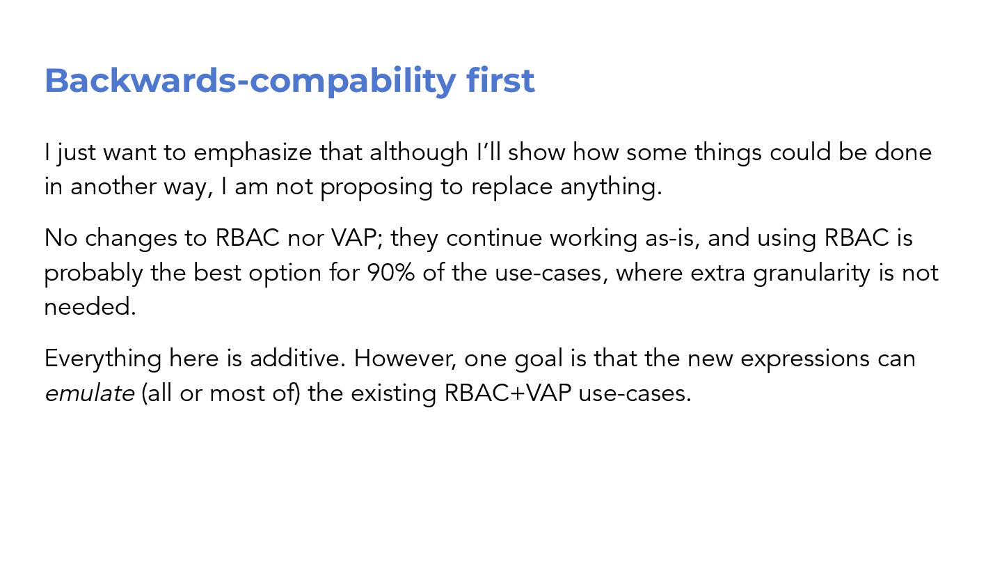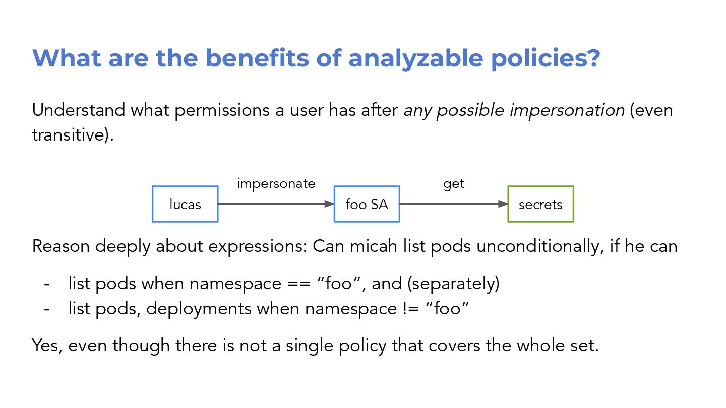 expressed interest in aligning field and label selectors across read and write verbs. One could add selectors to write verbs, but that expressivity is just a (very) small subset of what conditions users might write. However, we should totally unify the experience across reads and writes. To achieve that goal, I went the opposite way, exposing per-object predicates (as used in writes) for reads as well, instead of “raw” selectors. Selector predicate: request.resourceAttributes.fieldSelector.requirements.exists(r, r.key == "type" && r.operator == "=" && sets.equivalent(r.values, ["mytype"])) Object predicate: object.type == "mytype"