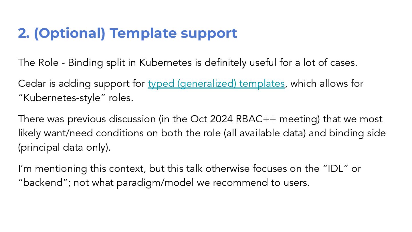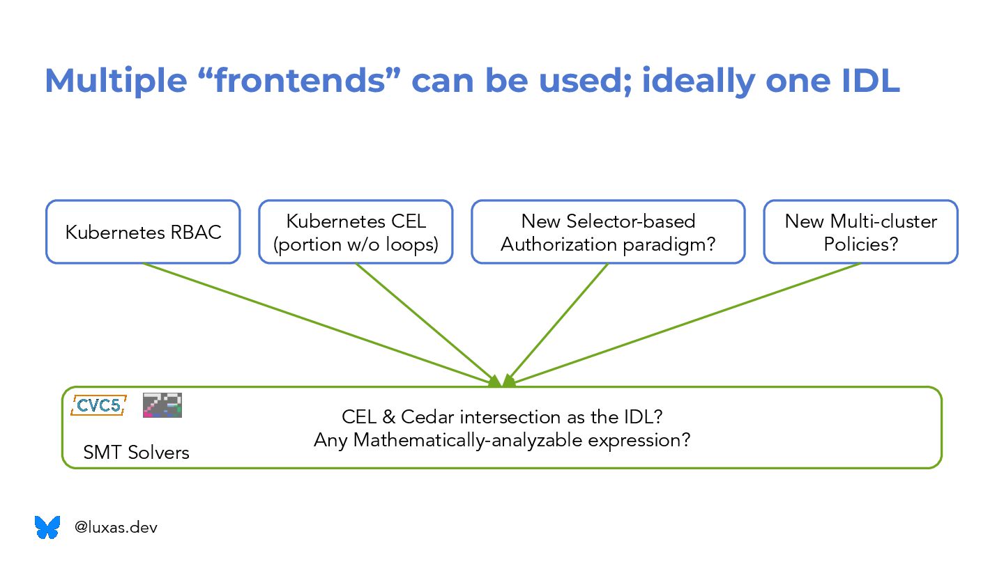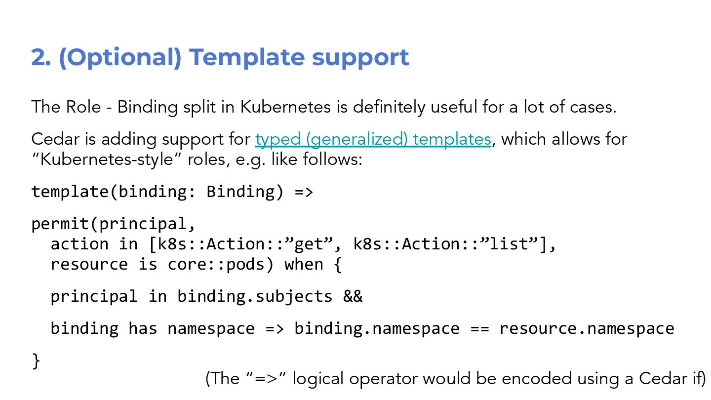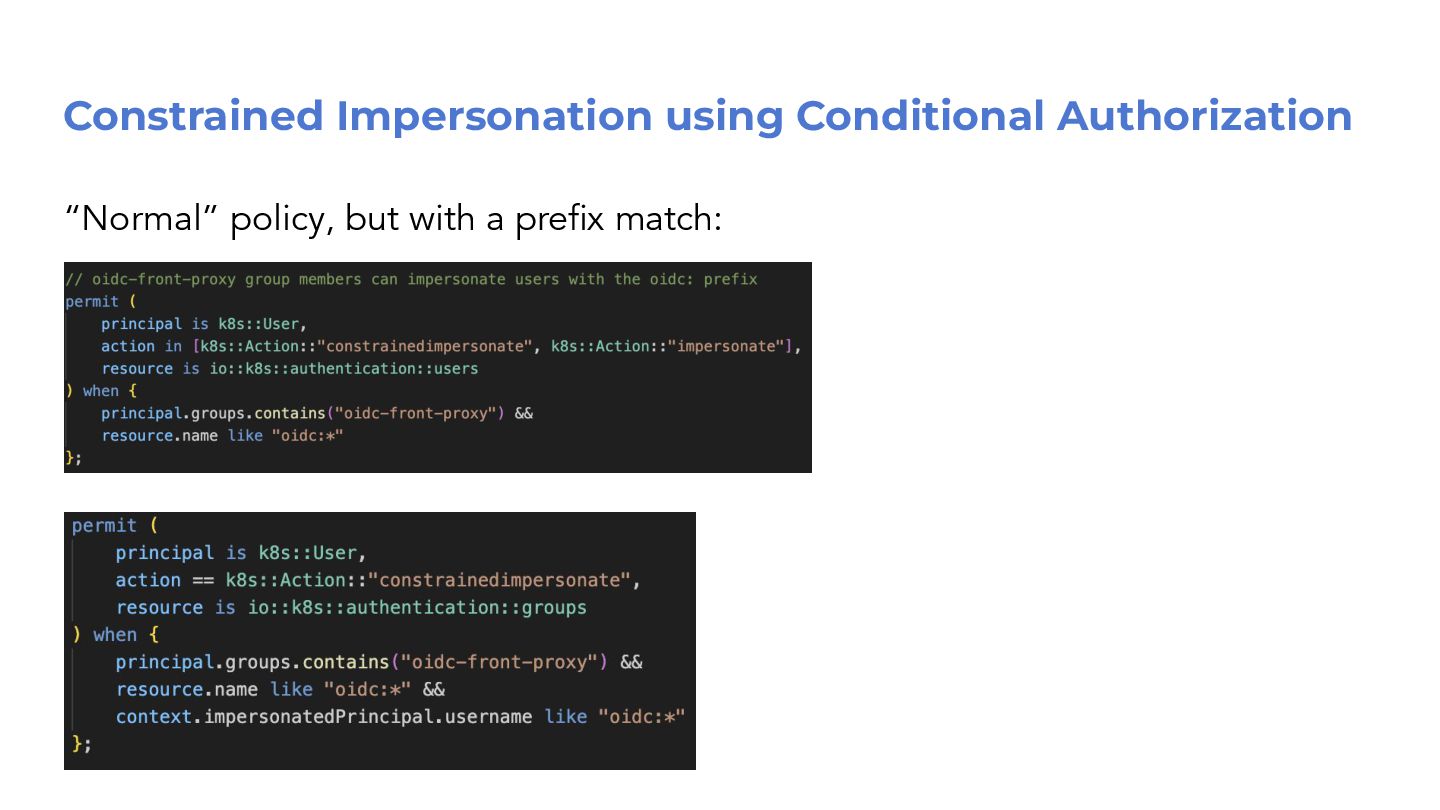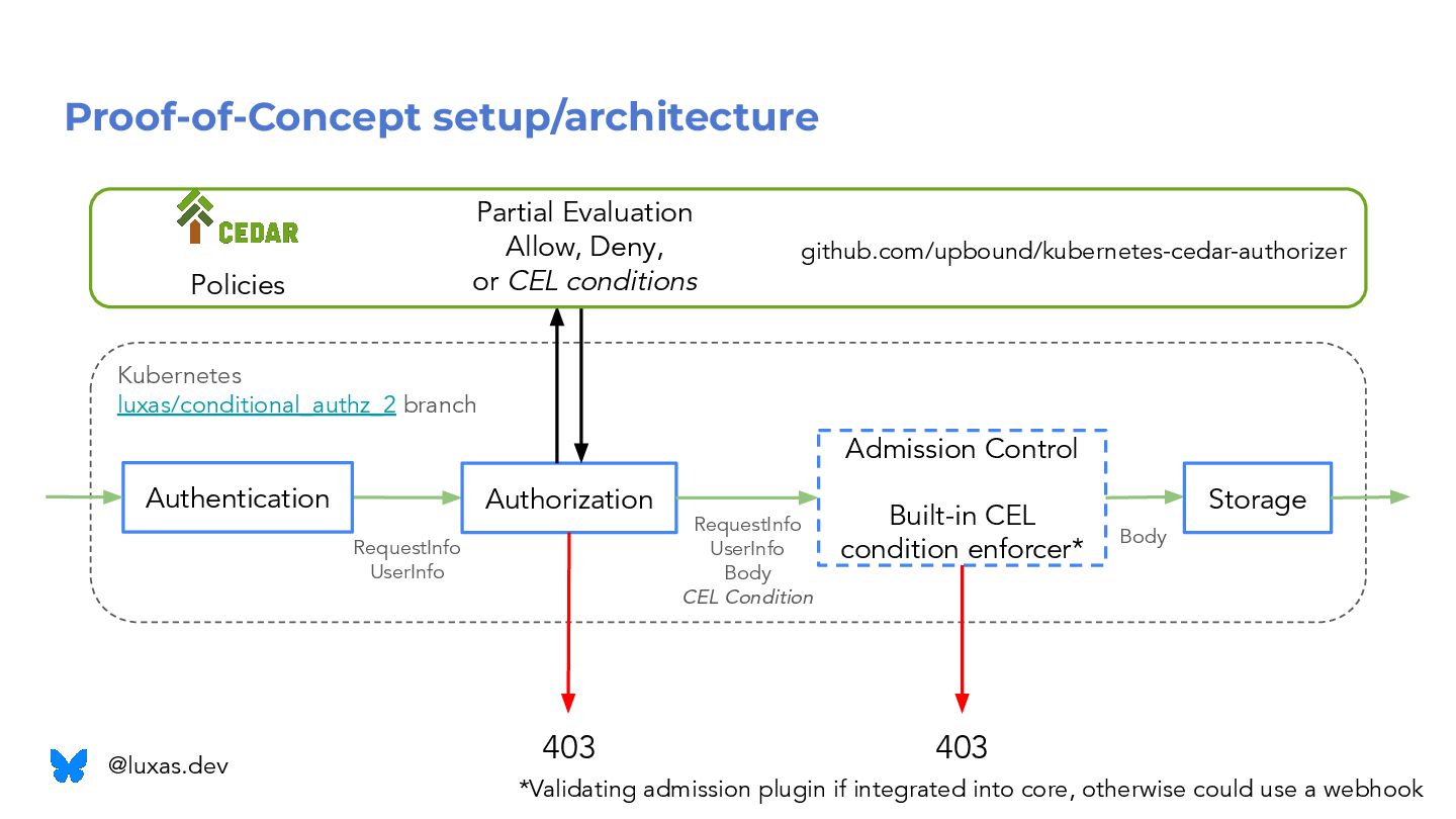 expressed interest in aligning field and label selectors across read and write verbs. One could add selectors to write verbs, but that expressivity is just a (very) small subset of what conditions users might write. However, we should totally unify the experience across reads and writes. To achieve that goal, I went the opposite way, exposing per-object predicates (as used in writes) for reads as well, instead of “raw” selectors. Selector predicate: request.resourceAttributes.fieldSelector.requirements.exists(r, r.key == "type" && r.operator == "=" && sets.equivalent(r.values, ["mytype"])) Object predicate: object.type == "mytype"