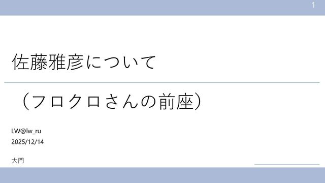 佐藤雅彦について (フロクロさんの前座) LW@lw_ru 2025/12/14 大門 1