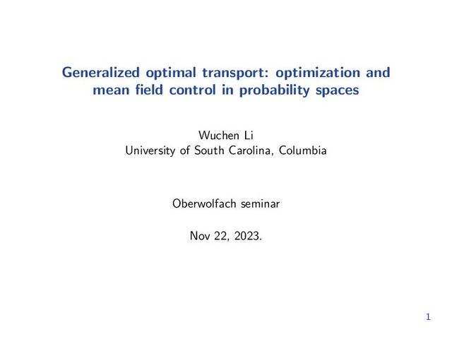 distribution, and training corresponds to finding the right flow vector field. Optimal transport and diffeomorphic flows provide powerful frameworks to analyze such trajectories of distributions with elegant notions from differential geometry, such as geodesics, gradient, and Hamiltonian flows. Recently, mean-field control and mean-field games offer general optimal control variational problems on the learning problem. How do these tools lead us to a better understanding and further development of machine learning and generative models?