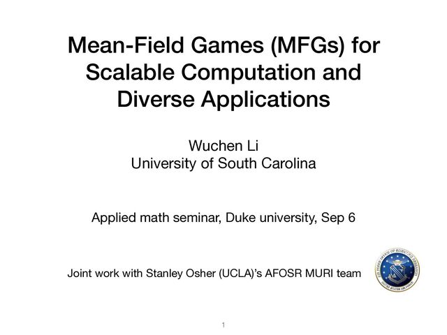 1. Mean-Field Games (MFGs) for Scalable Computation and Diverse Applications Wuchen