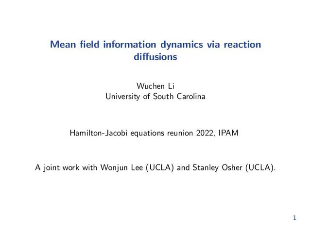 1. Mean field information dynamics via reaction diffusions Wuchen Li University