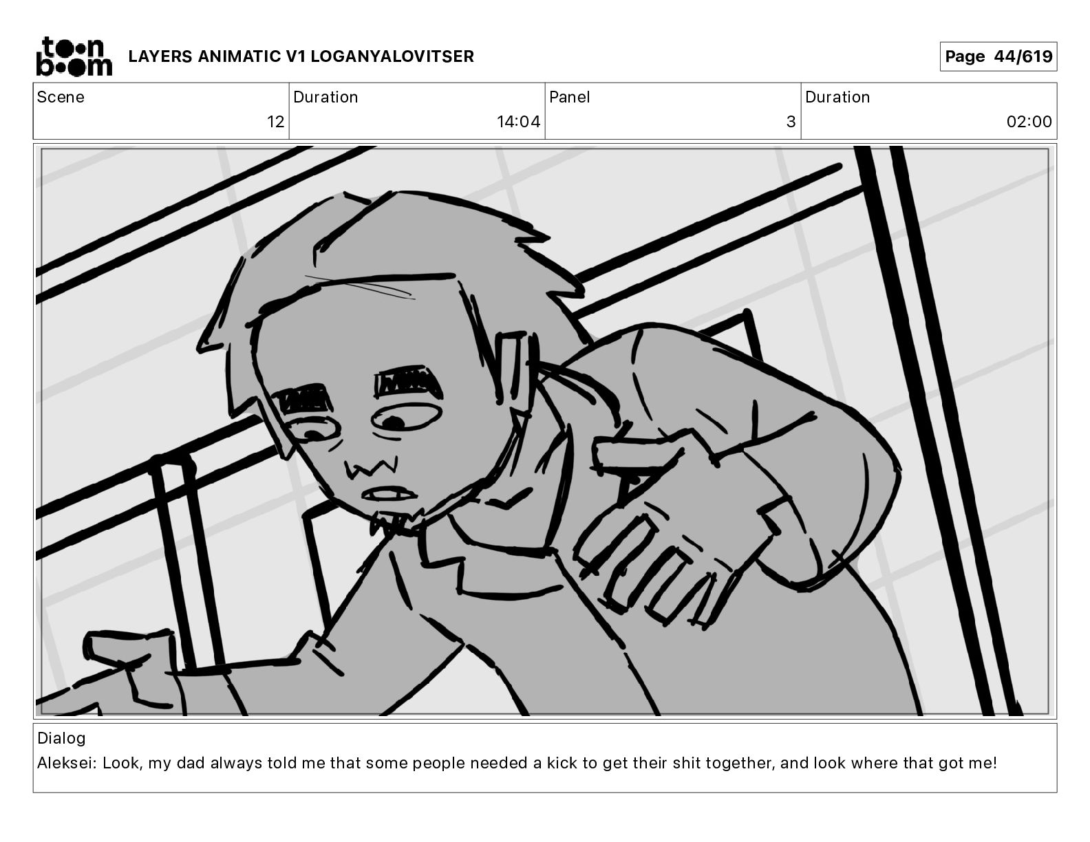 Dialog Aleksei: Look, my dad always told me that some people needed a kick to get their shit together, and look where that got me! LAYERS ANIMATIC V1 LOGANYALOVITSER Page 44/619