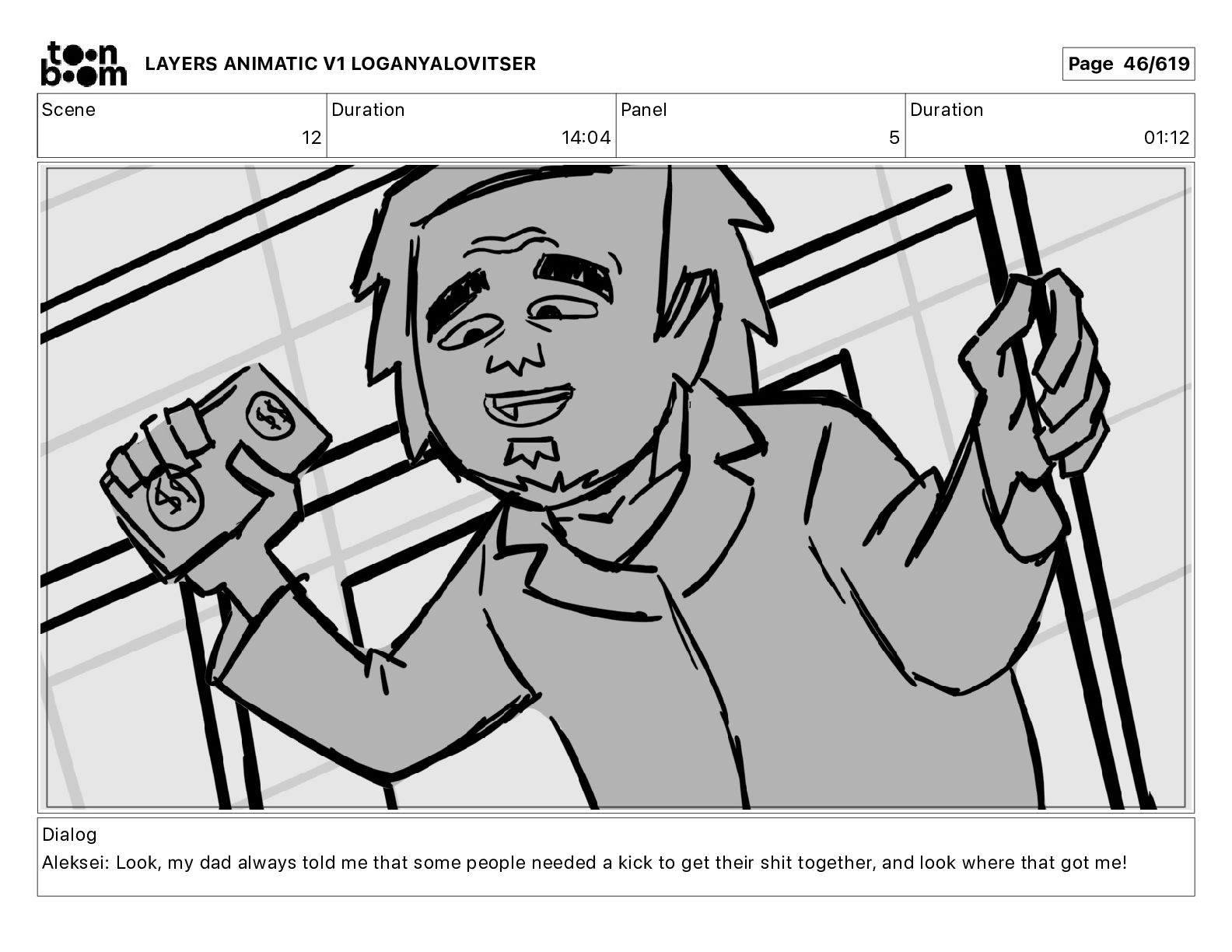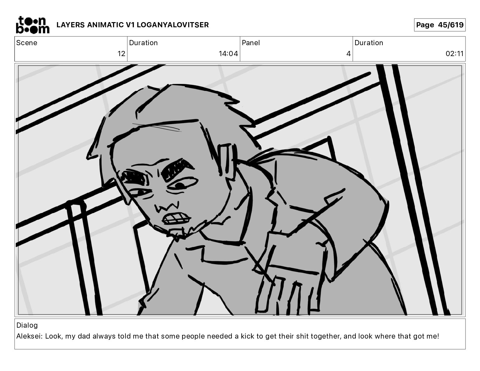 Dialog Aleksei: Look, my dad always told me that some people needed a kick to get their shit together, and look where that got me! LAYERS ANIMATIC V1 LOGANYALOVITSER Page 45/619