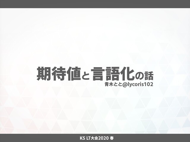 KS LT大会2020 春 青木とと@lycoris102 期待値と言語化の話
