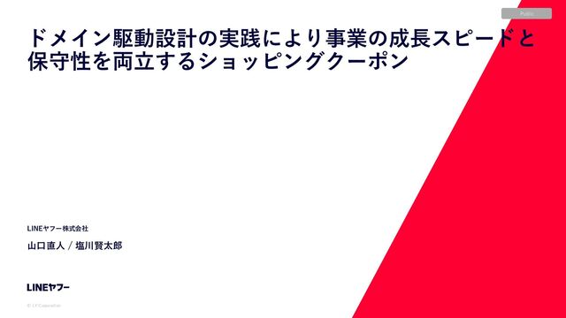 © LY Corporation Public LINEヤフー株式会社 山口直人 / 塩川賢太郎 ドメイン駆動設計の実践により事業の成長スピードと 保守性を両立するショッピングクーポン