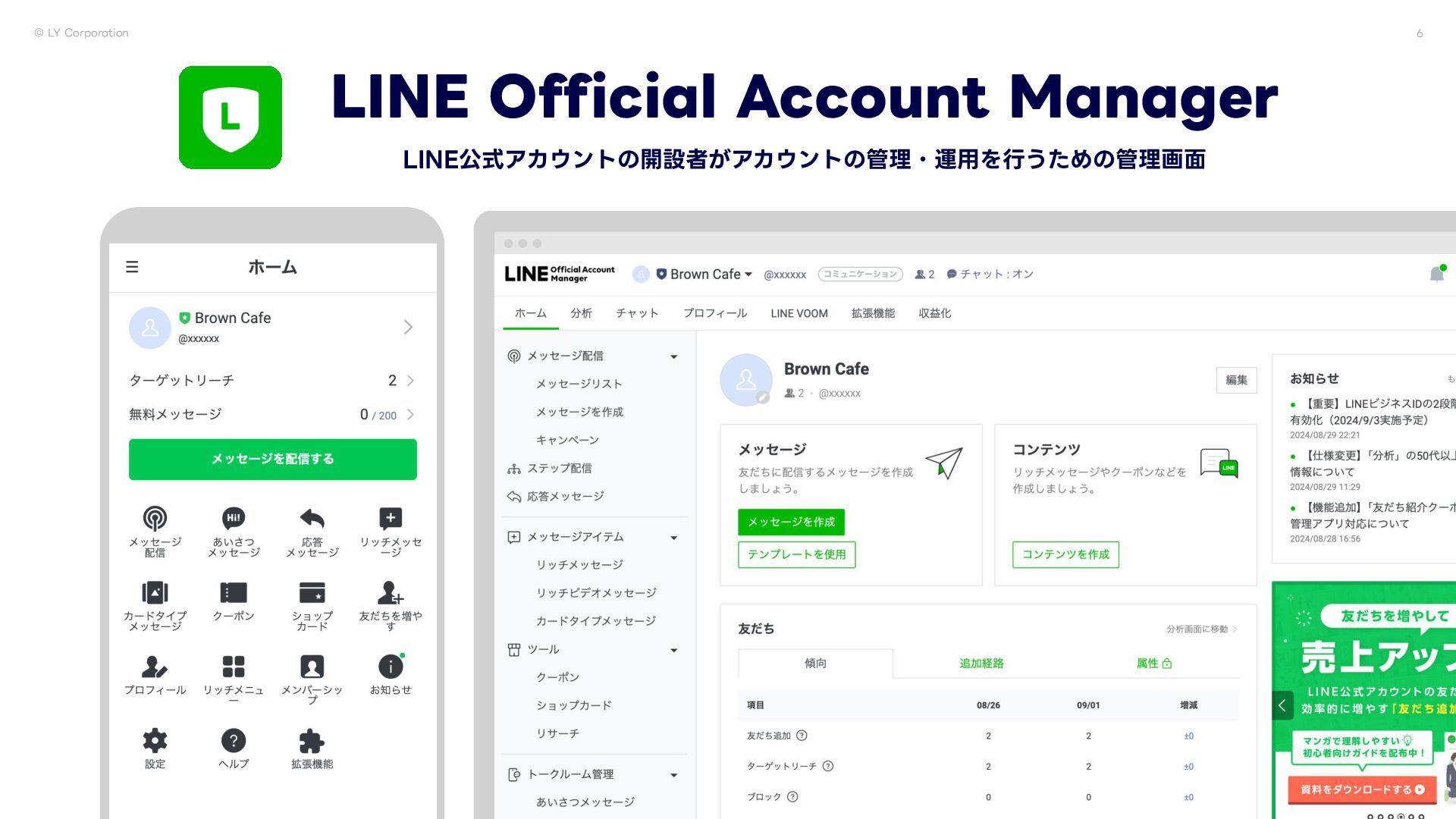 一般ユーザーが日々触れるLINE内のWebアプリケーション群と、ビジネスオーナーが運用で使用する管理画面の両輪で成り立ち、機能追加と品質改善を継続的に行っています。