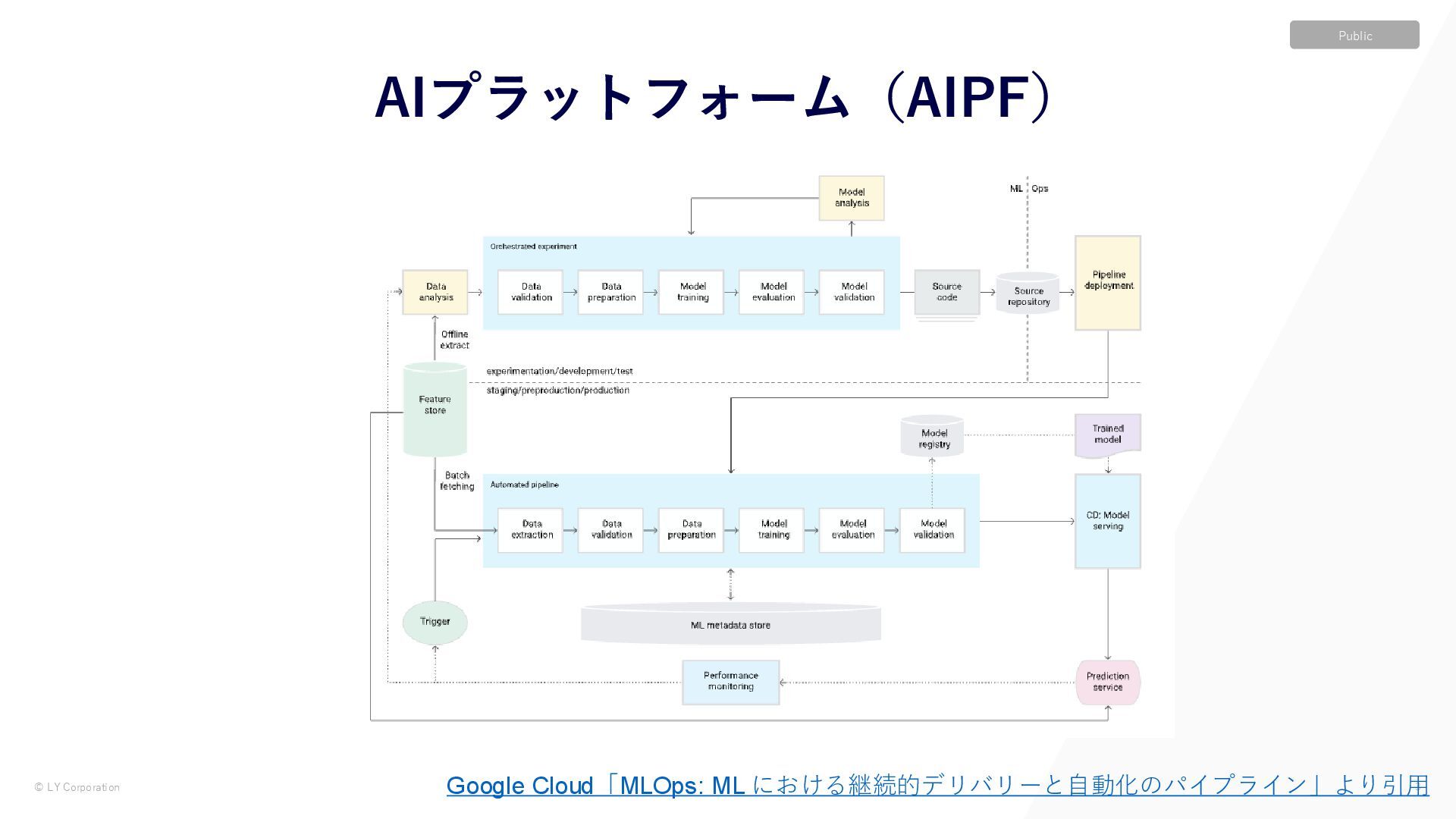 © LY Corporation 3 AIプラットフォーム(AIPF) Public Google Cloud「MLOps: ML における継続的デリバリーと自動化のパイプライン」より引用
