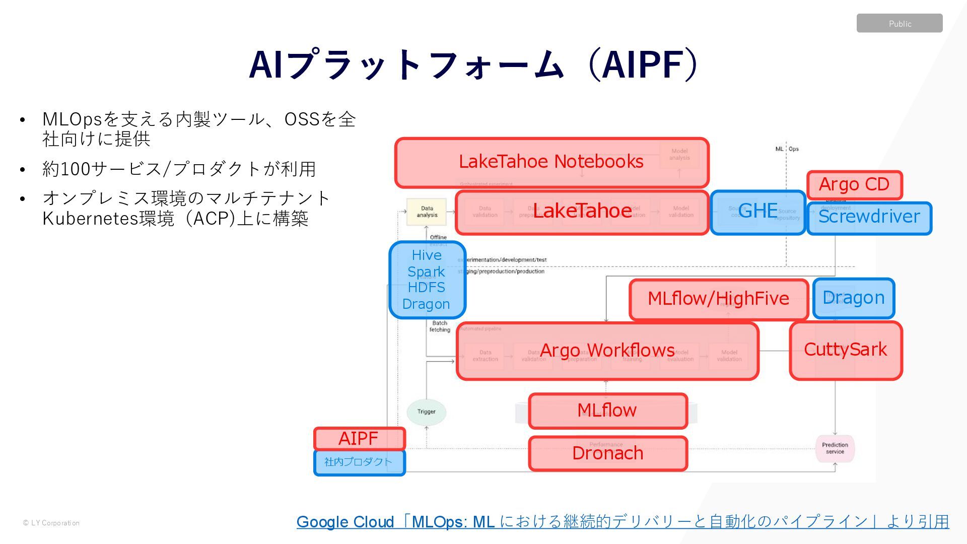 © LY Corporation 4 AIプラットフォーム(AIPF) Public Google Cloud「MLOps: ML における継続的デリバリーと自動化のパイプライン」より引用
