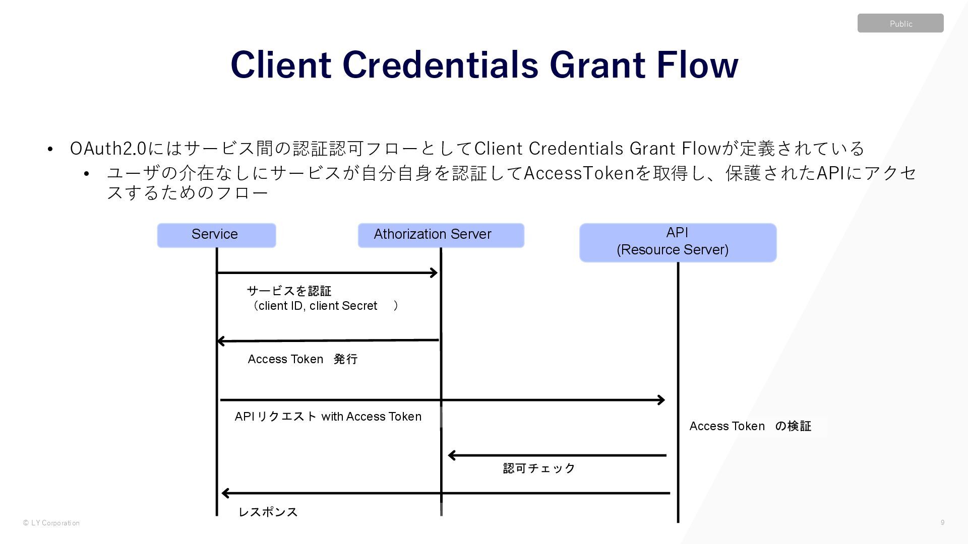 © LY Corporation Public • OAuth2.0にはサービス間の認証認可フローとしてClient Credentials Grant Flowが定義されている •