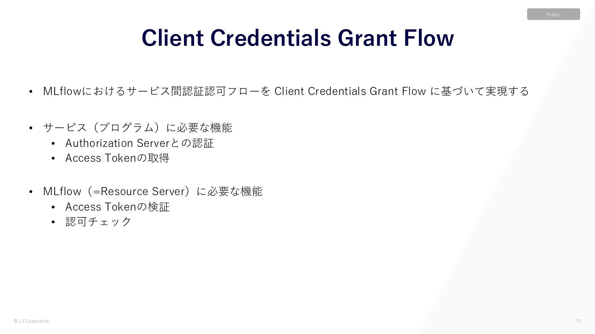 © LY Corporation Public • MLflowにおけるサービス間認証認可フローを Client Credentials Grant Flow