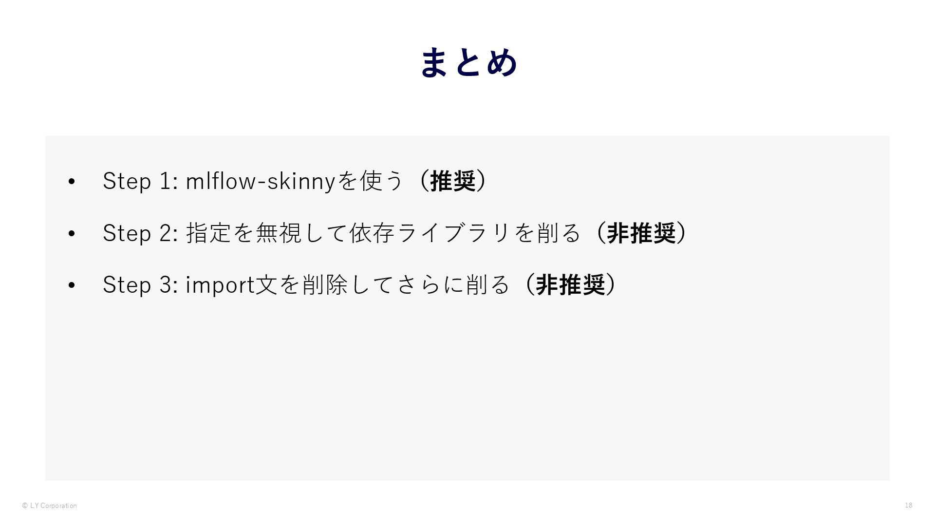 © LY Corporation • Step 1: mlflow-skinnyを使う(推奨) • Step 2: