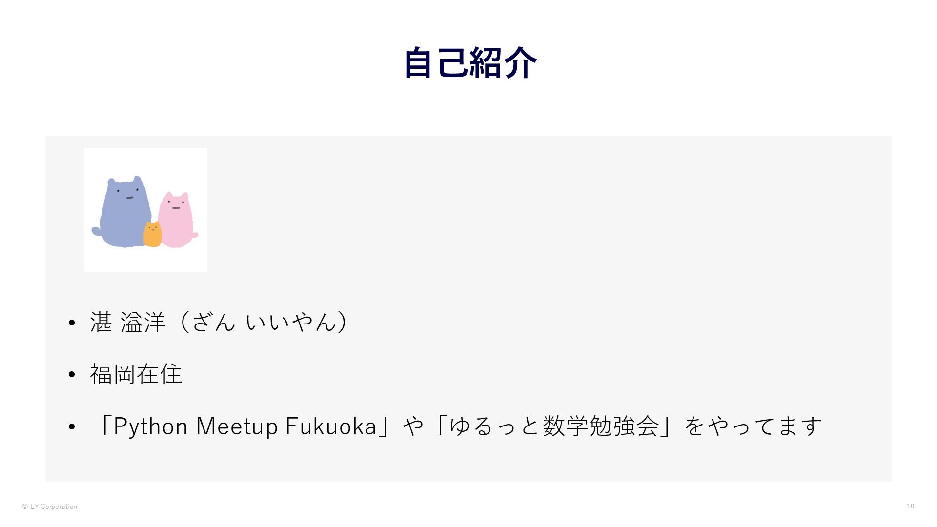 「Python Meetup Fukuoka」や「ゆるっと数学勉強会」をやってます 19 自己紹介