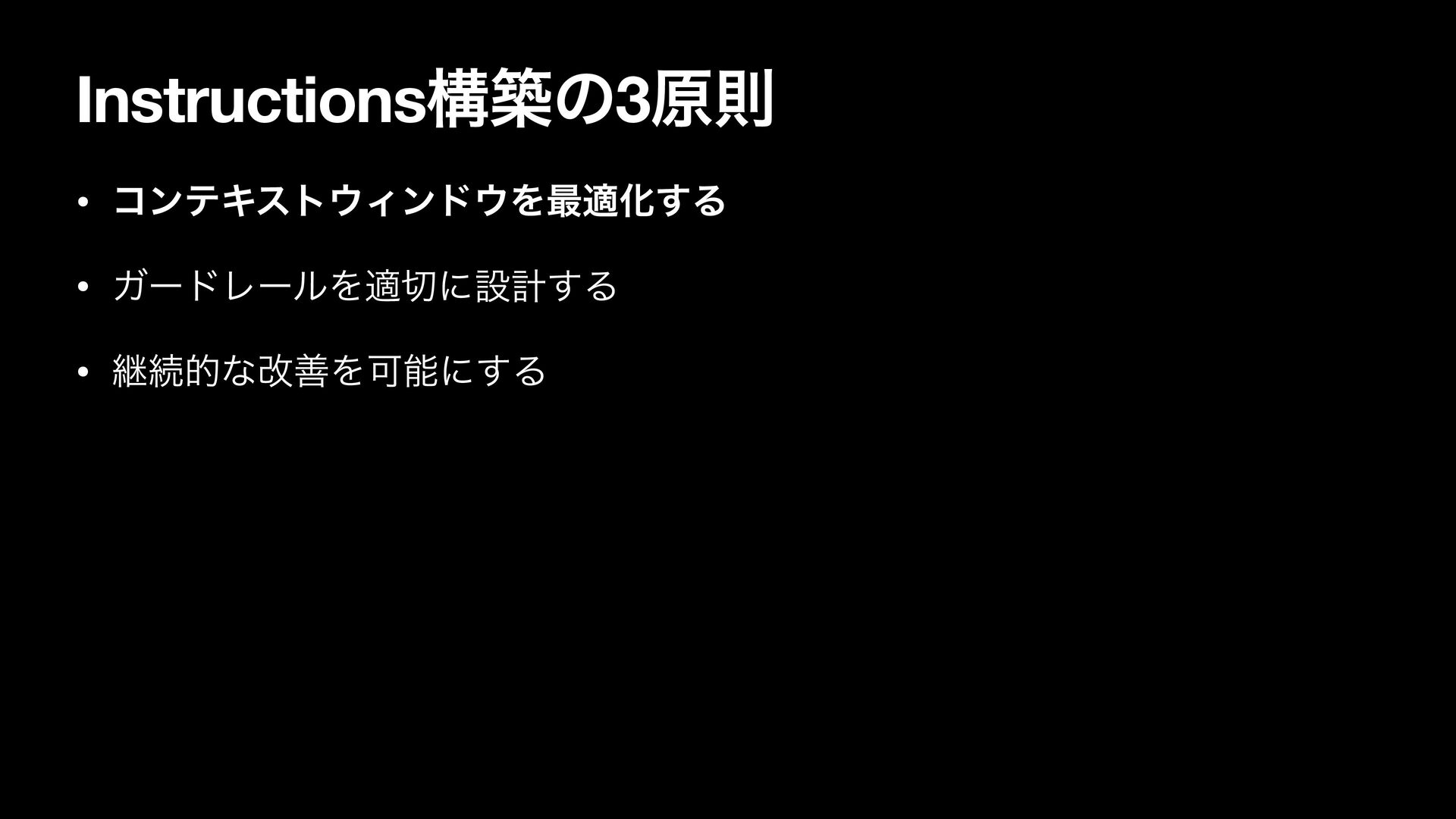 8. ·ͱΊ w *OTUSVDUJPOT͸ίϯςΩετ΢Οϯυ΢ʹ࠷దԽͨ͠ઃܭʹ͢Δ w .FNPSZ'JMFT͸࠷খݶʹೲΊΔ w 4LJMMT 3VMFTͳͲͰ୅ସͰ͖Δ͜ͱ͸$-"6%&NEʹॻ͔ͳ͍ w "HFOU4LJMMT͸$POUFOUTΛҙࣝͯ͠ద੾ͳઃܭΛߟ͑Δ
