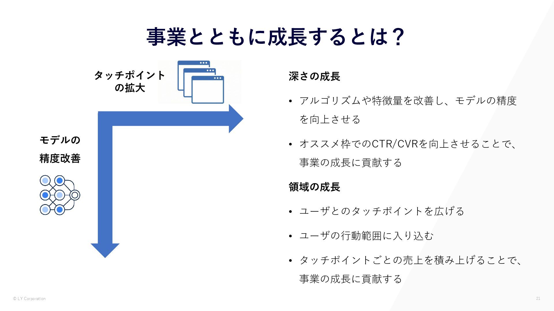 単なるモデルの精度改善にとどまらず、ユーザーとのタッチポイント拡大や新たな機能価値の創出を通じて、いかにして事業価値(KGI/KPI)とユーザー体験を最大化させているか、具体的な事例を交えて共有します。